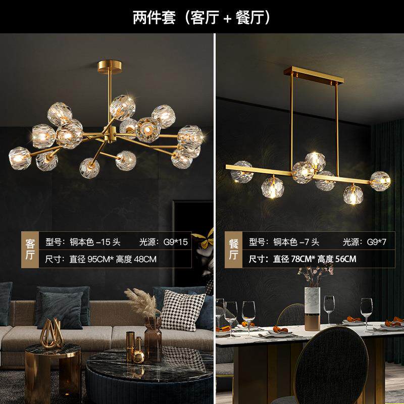 帕莎灯饰轻奢客厅水晶吊灯全铜后现代简约餐厅主卧室2024新款灯具