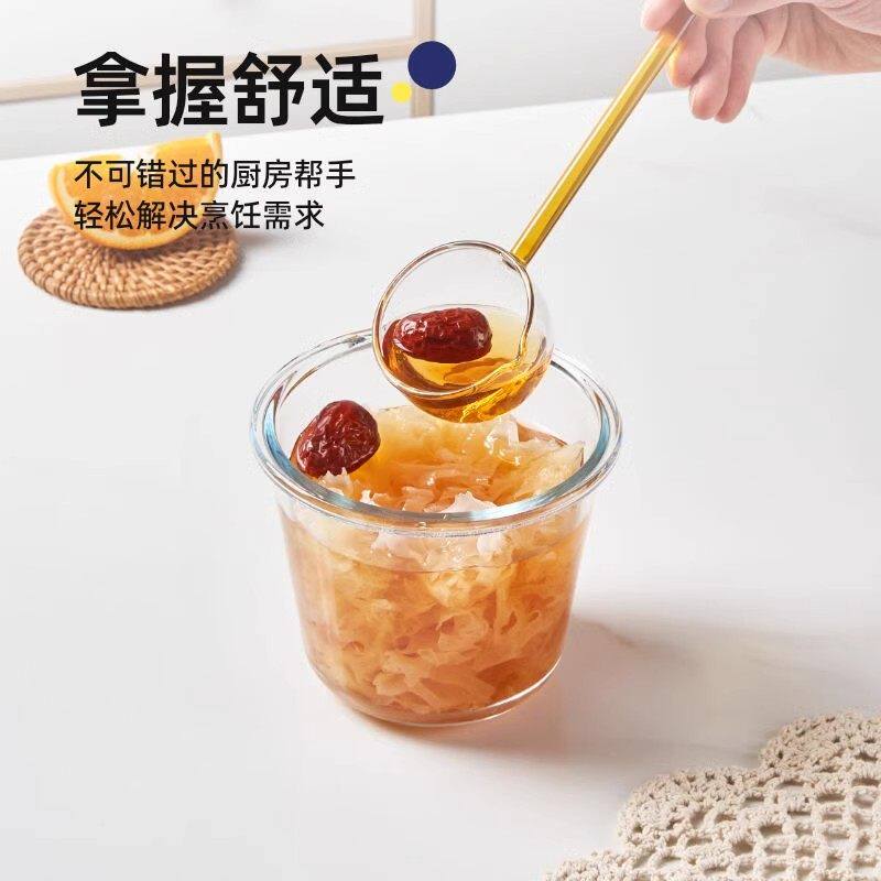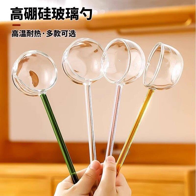 高硼硅玻璃勺子长柄耐高温热油勺蜂蜜勺透明果酱调羹玻璃大号汤勺