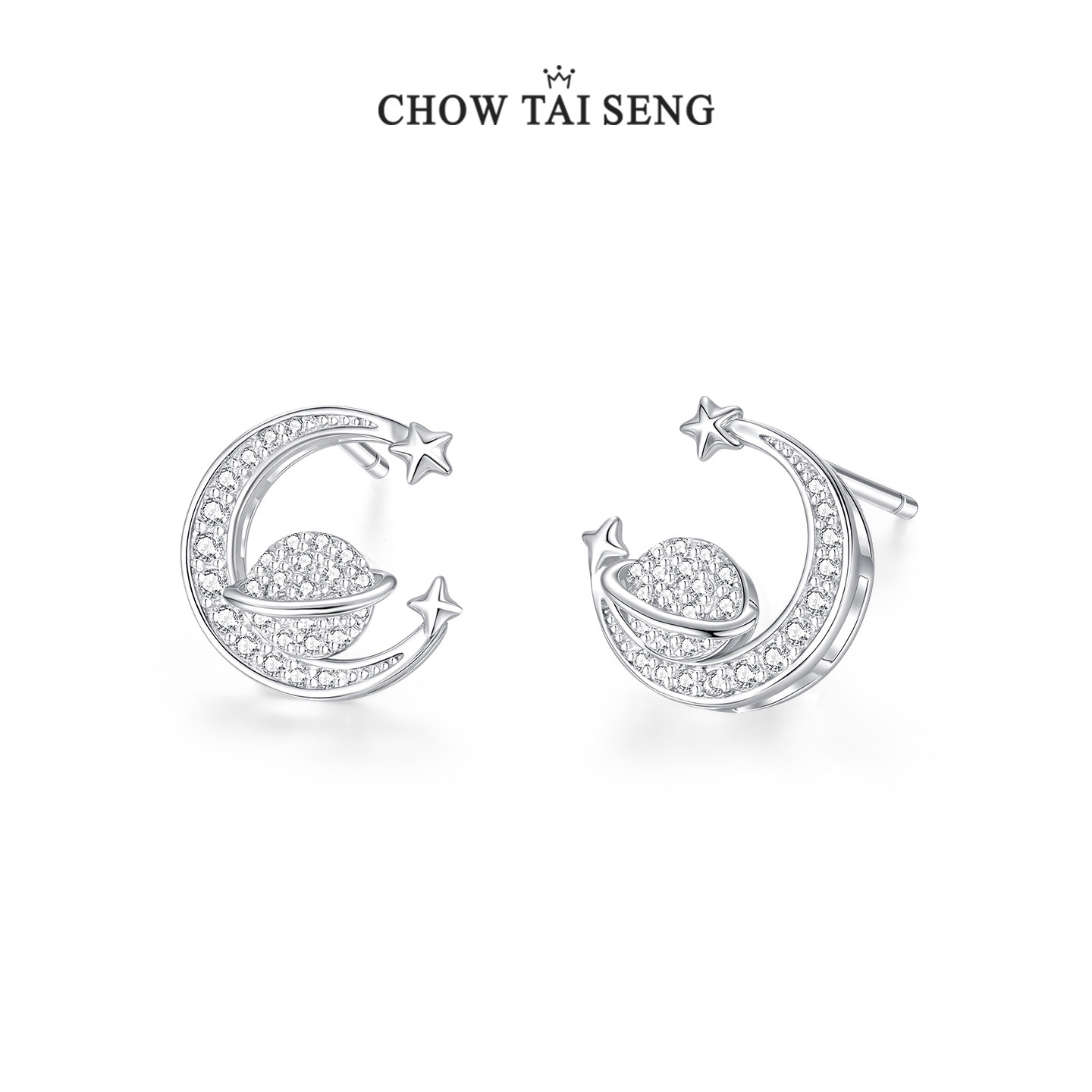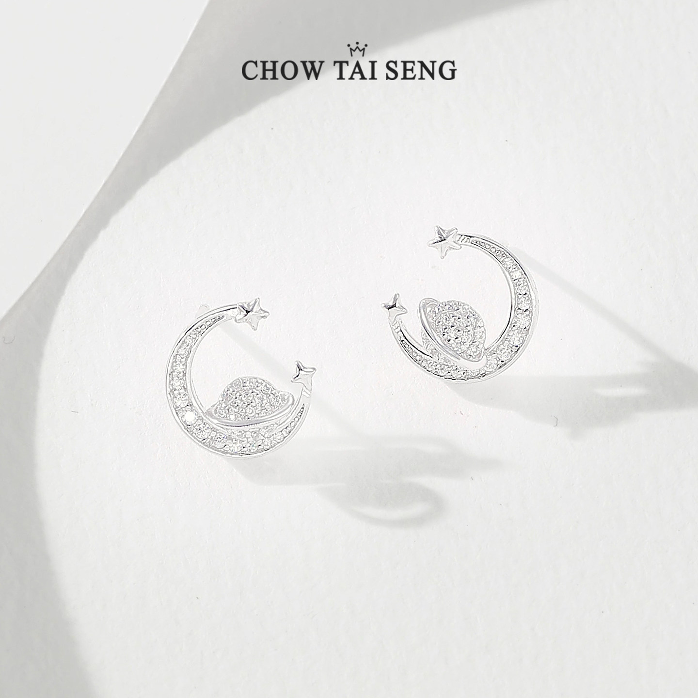 周大生星月流转耳钉女纯银轻奢精致高级感月亮耳饰生日礼物送女友