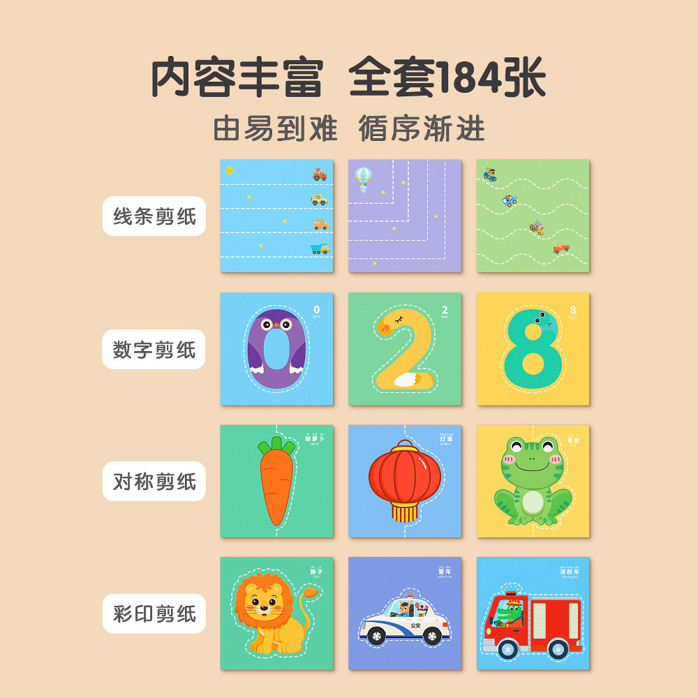 剪纸儿童手工幼儿园3岁2宝宝专注力训练益智玩具趣味折纸套装认知