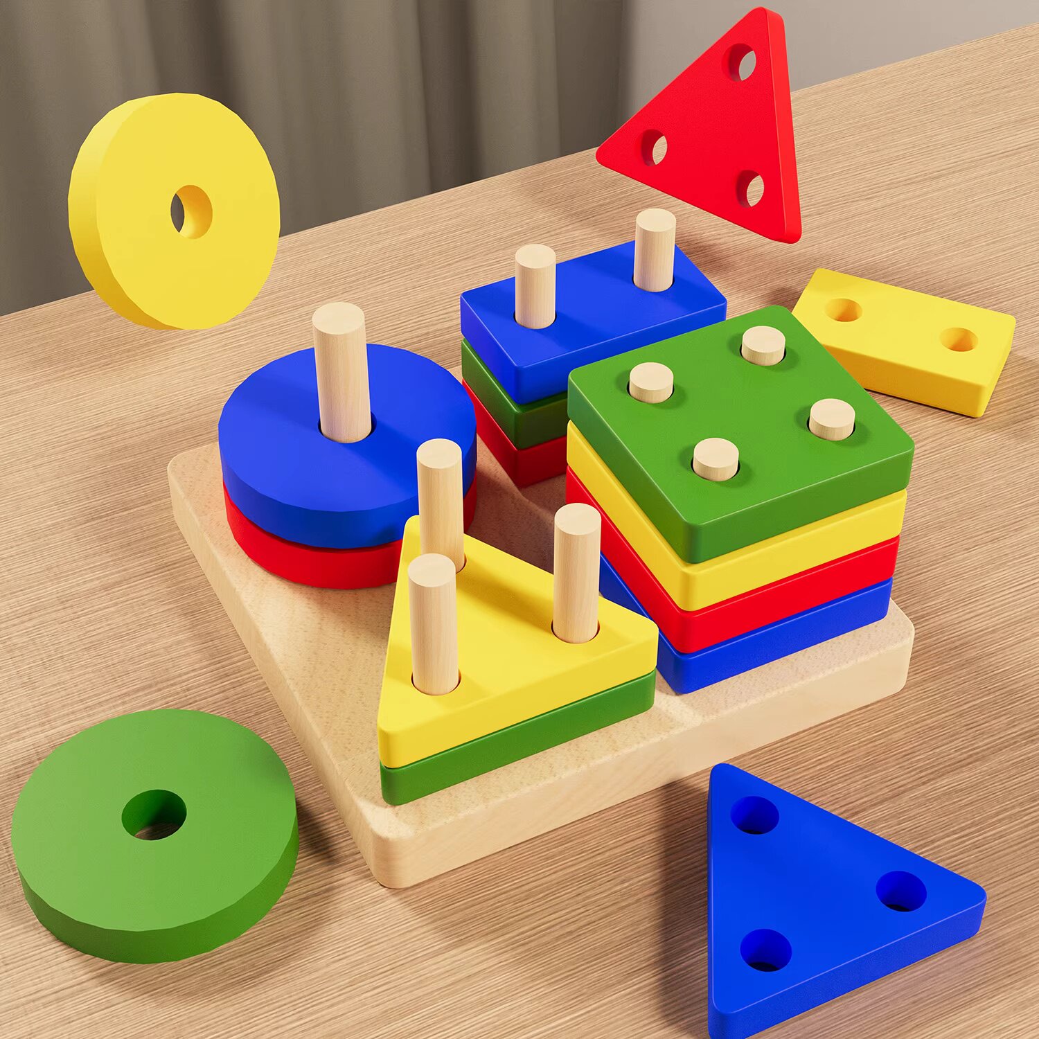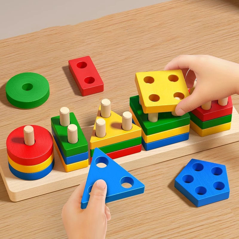 儿童益智拼装积木蒙氏几何套柱宝宝形状颜色配对认知拼图玩具图形