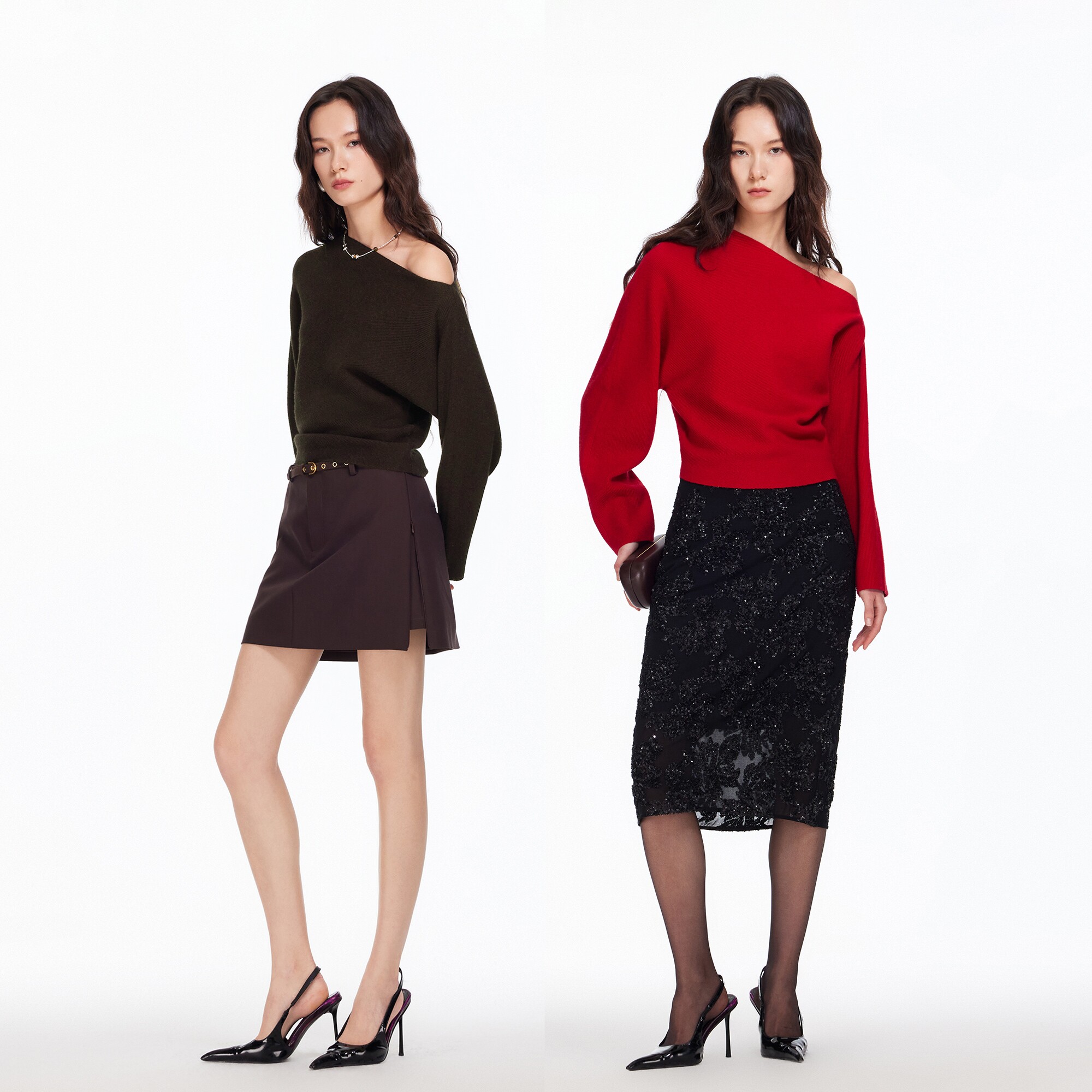 Vero Moda针织衫女2026春新款含绵羊毛兔毛斜肩毛衣上衣326124013