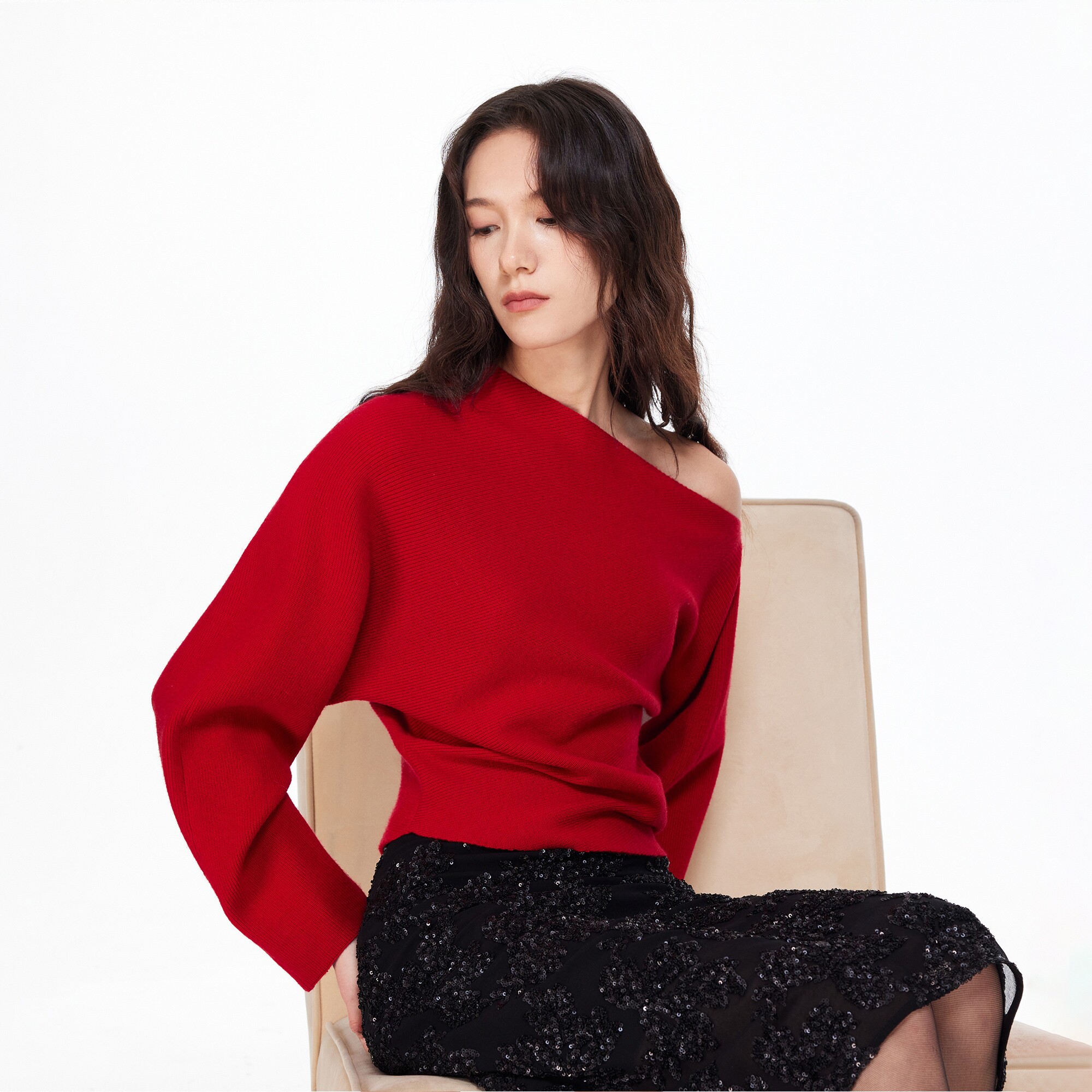 斜肩设计,隐约性感女人味;面料舒适