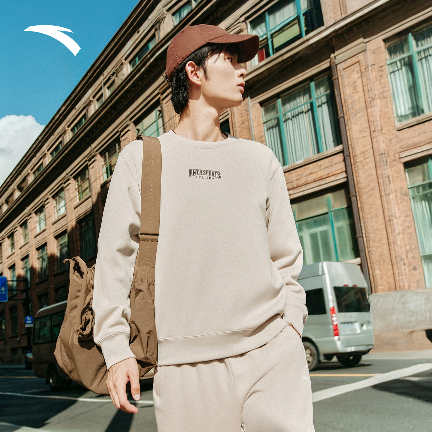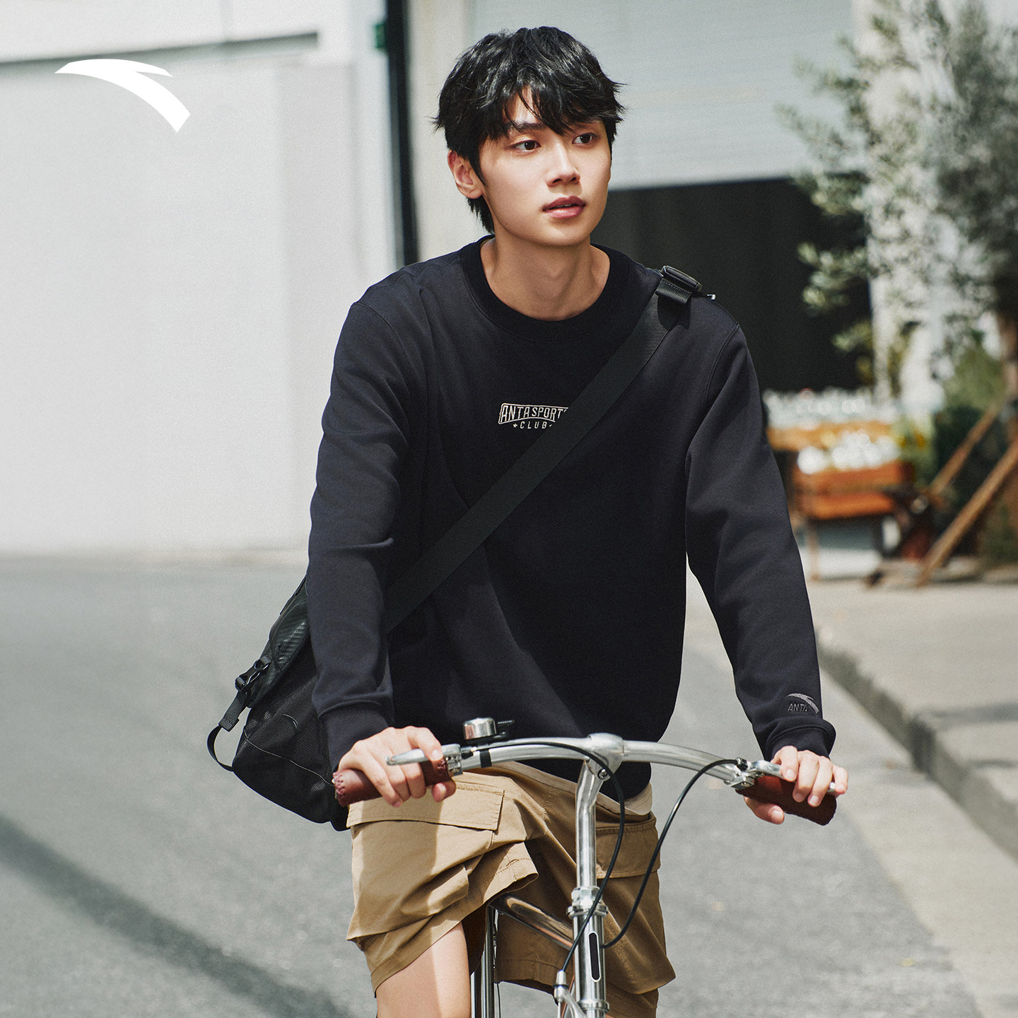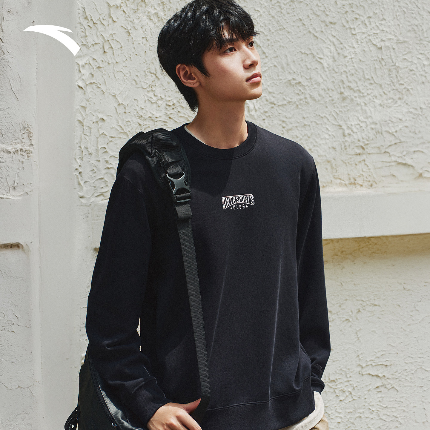 安踏加绒套头休闲卫衣男春季简约休闲针织长袖运动上衣152548708