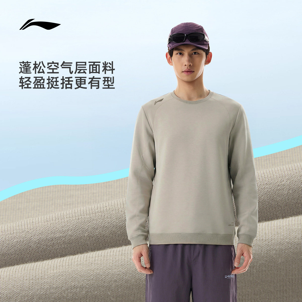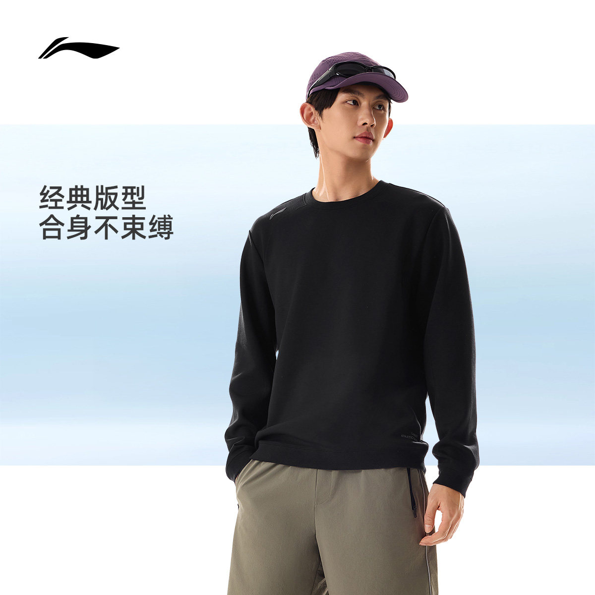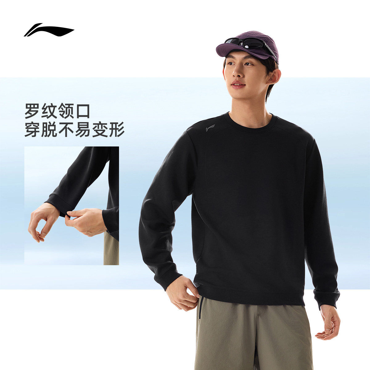 李宁卫衣男士春季2026新款跑步上衣训练长袖圆领男装针织运动服男