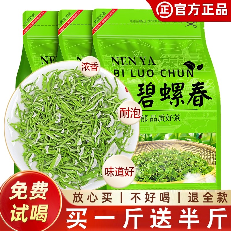 发1.5斤 碧螺春绿茶2025新茶春茶浓香型茶叶高山毛尖茶袋装炒青茶