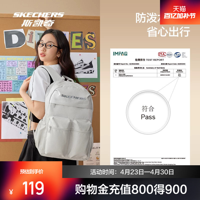 斯凯奇新品双肩包背包防泼水大容量口袋书包旅游通勤轻便登山包