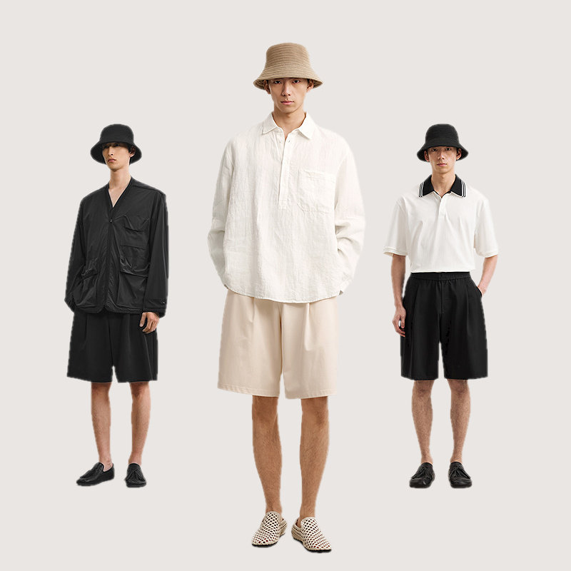 速写男装春夏新款男士裤子纯色直筒中短裤棉质廓形舒适简约休闲