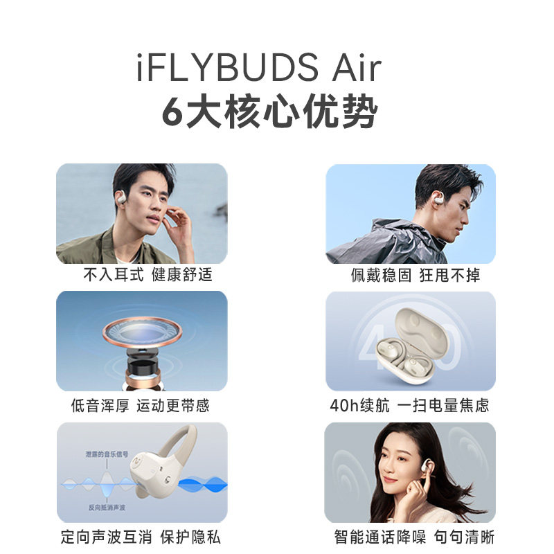科大讯飞 iFLYBUDS AIR AIR2无线蓝牙耳机不入耳运动会议录音翻译