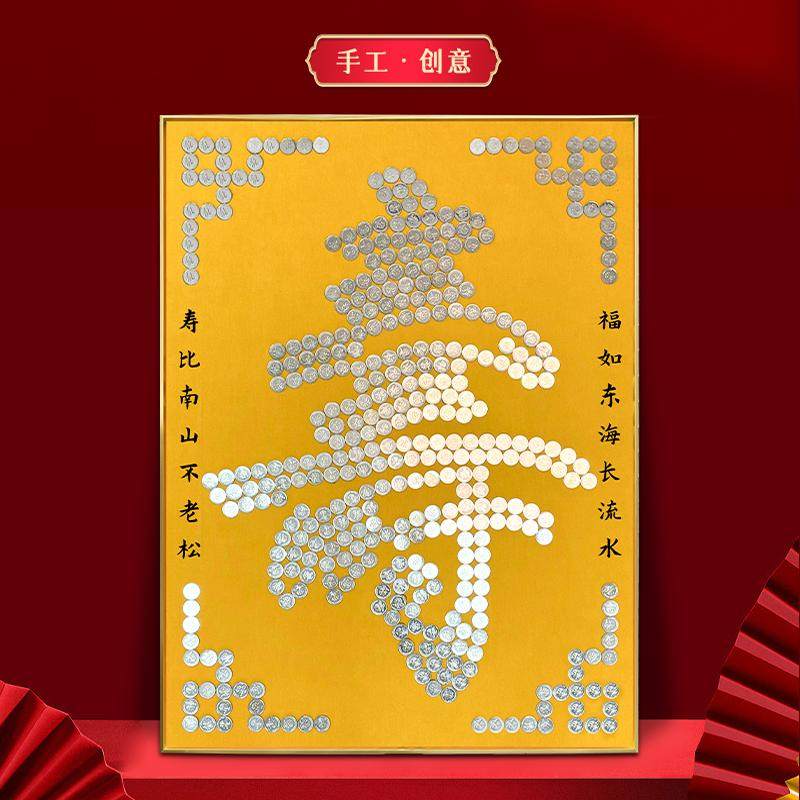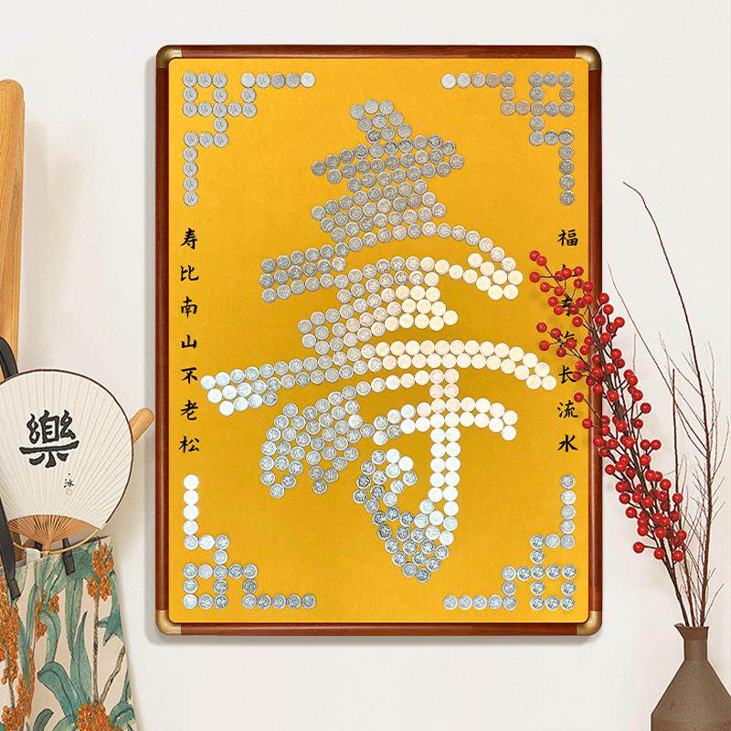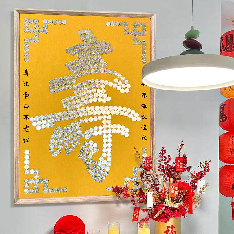 五毛钱硬币贴福字寿字相框5角手工diy礼物送老人实用过寿生日礼物