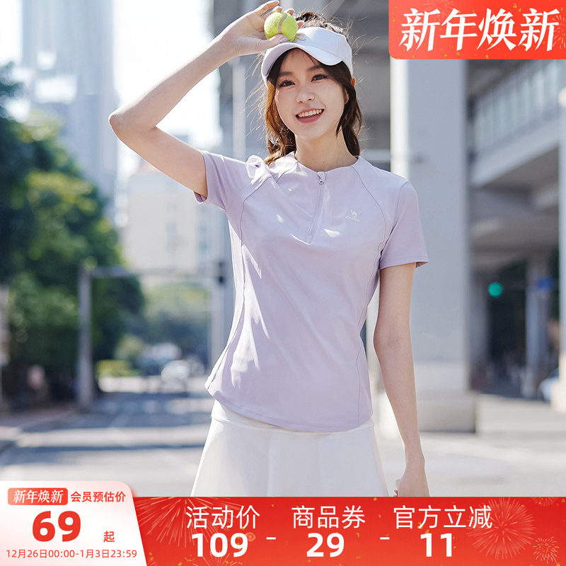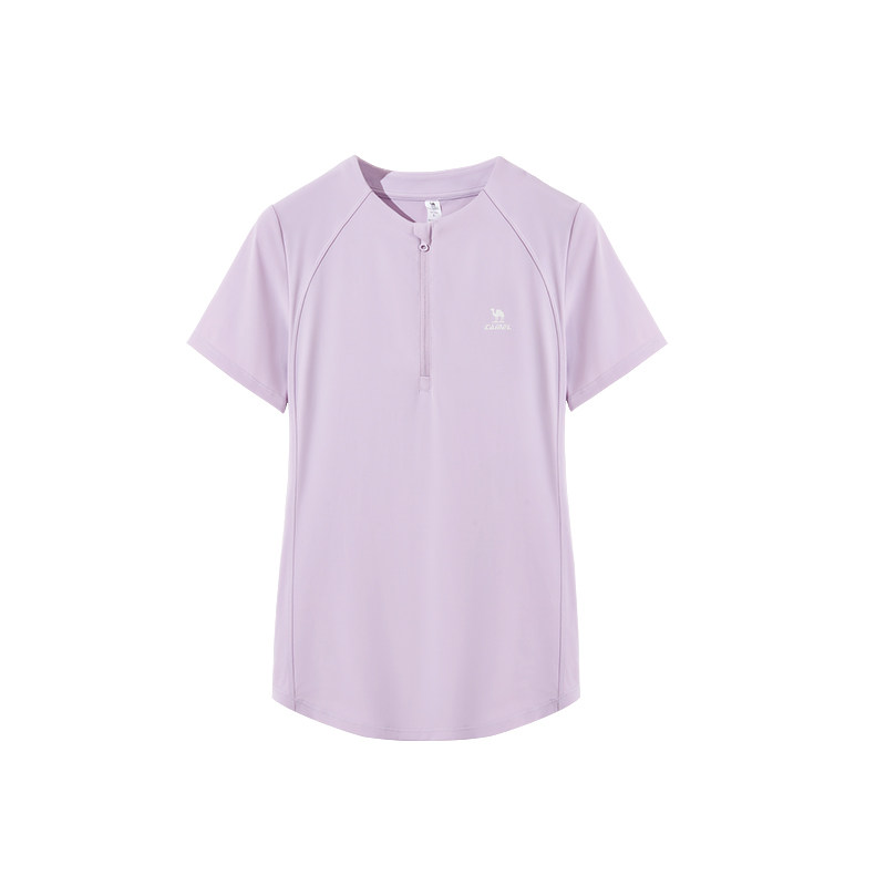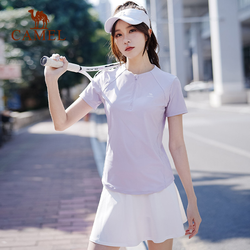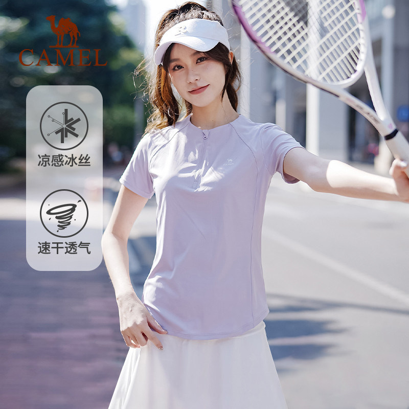 骆驼运动速干t恤女士2025夏季网球服健身跑步立领瑜伽服凉感短袖
