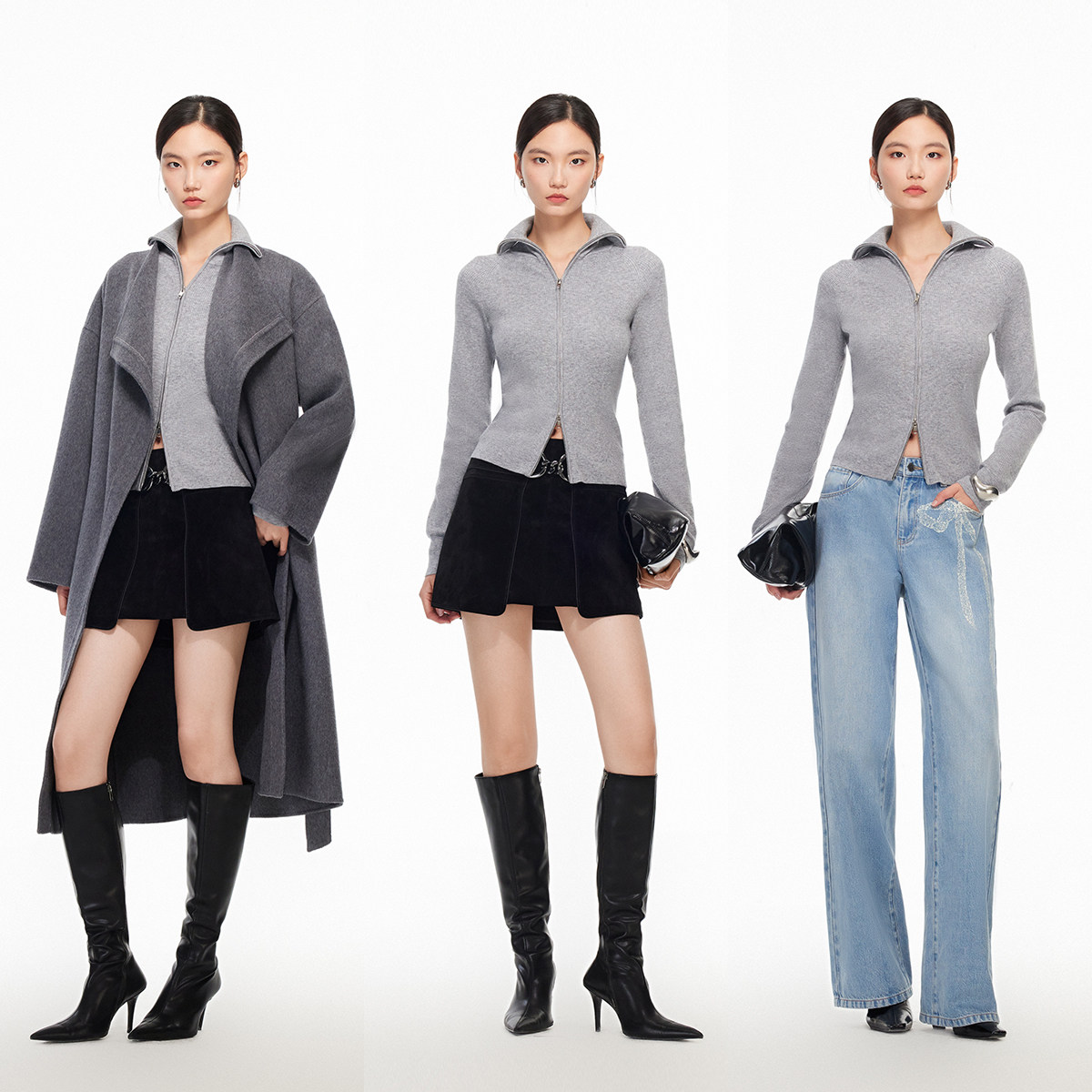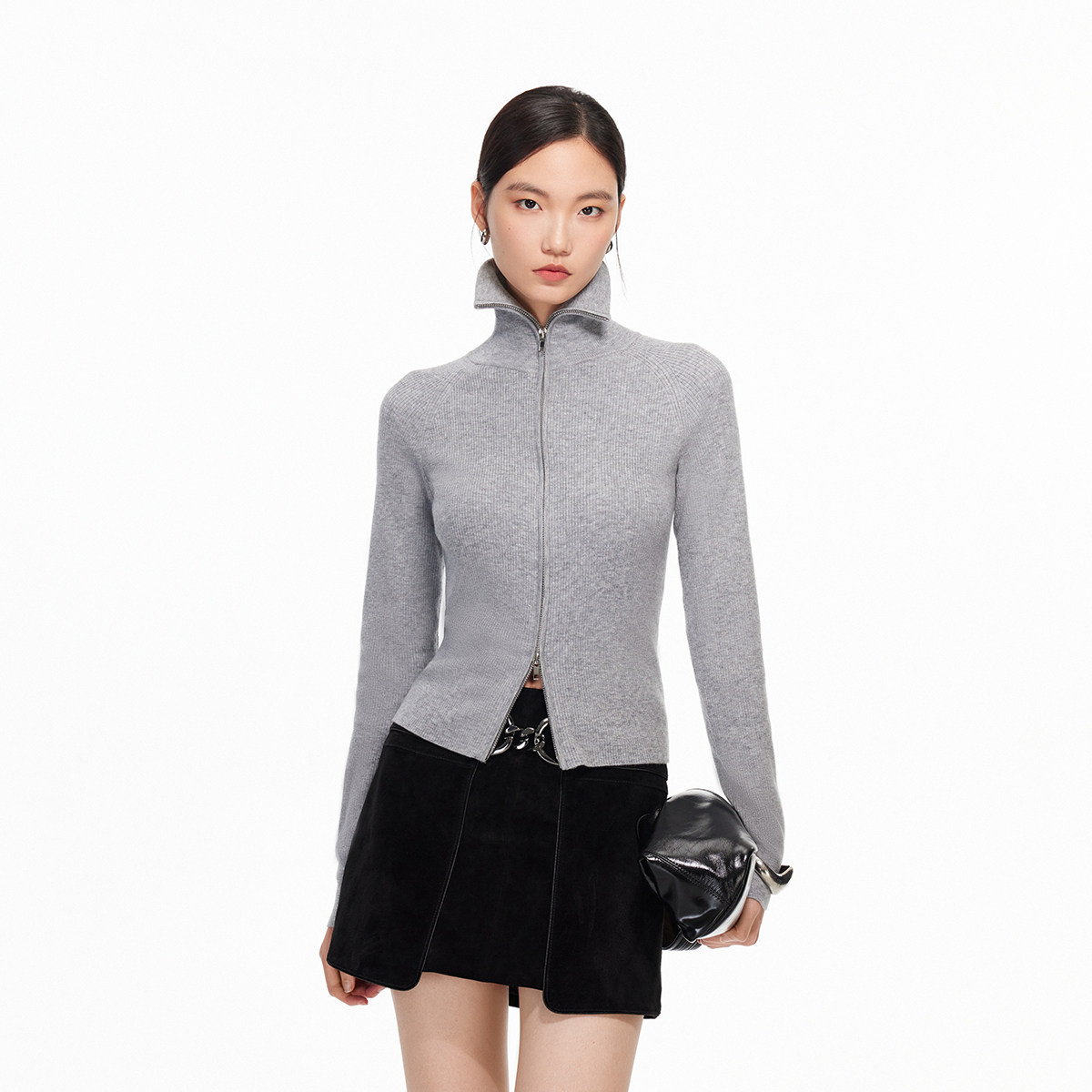 罗纹拉链针织开衫,经典优雅且增加休闲感;
