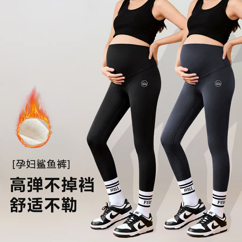 婧麒孕妇打底裤子秋冬外穿2025新款加绒加厚瑜伽鲨鱼裤保暖孕妇装