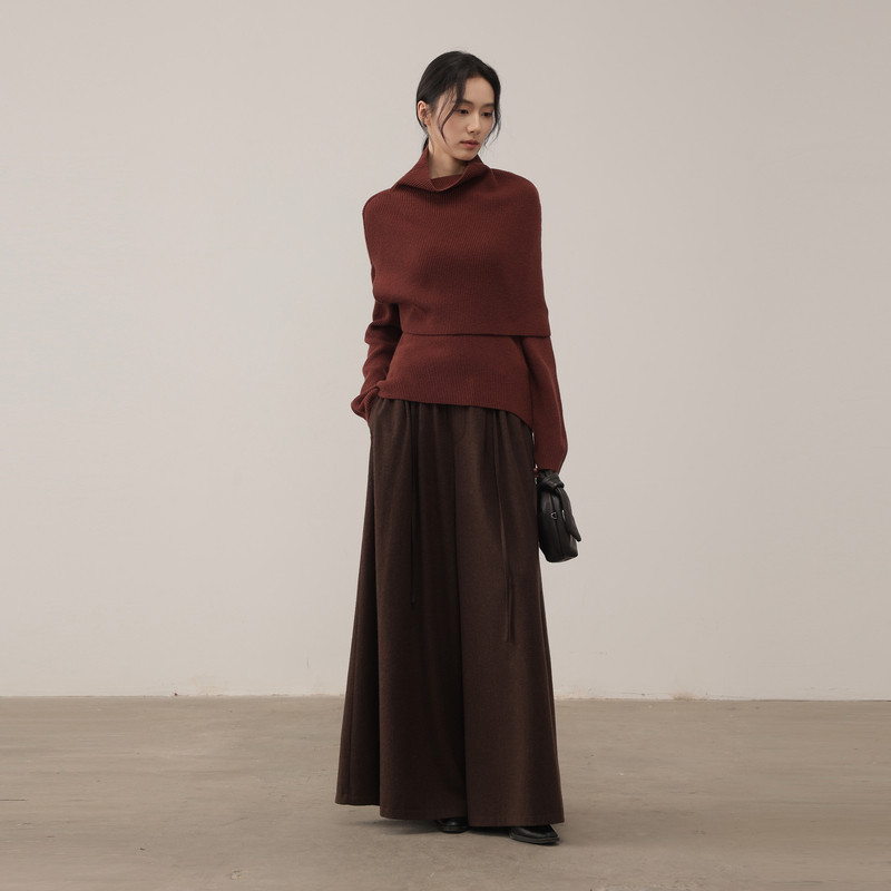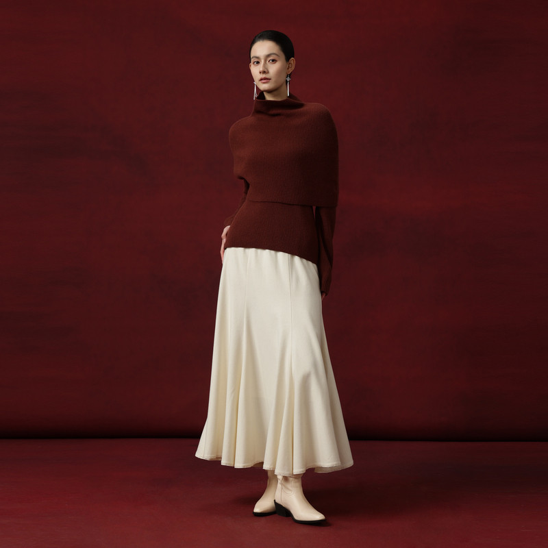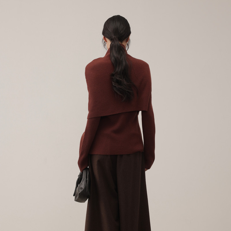 黑标BAIZHUO商场同款25冬新款V领毛衫+披肩羊毛针织套装AZ54TZ498