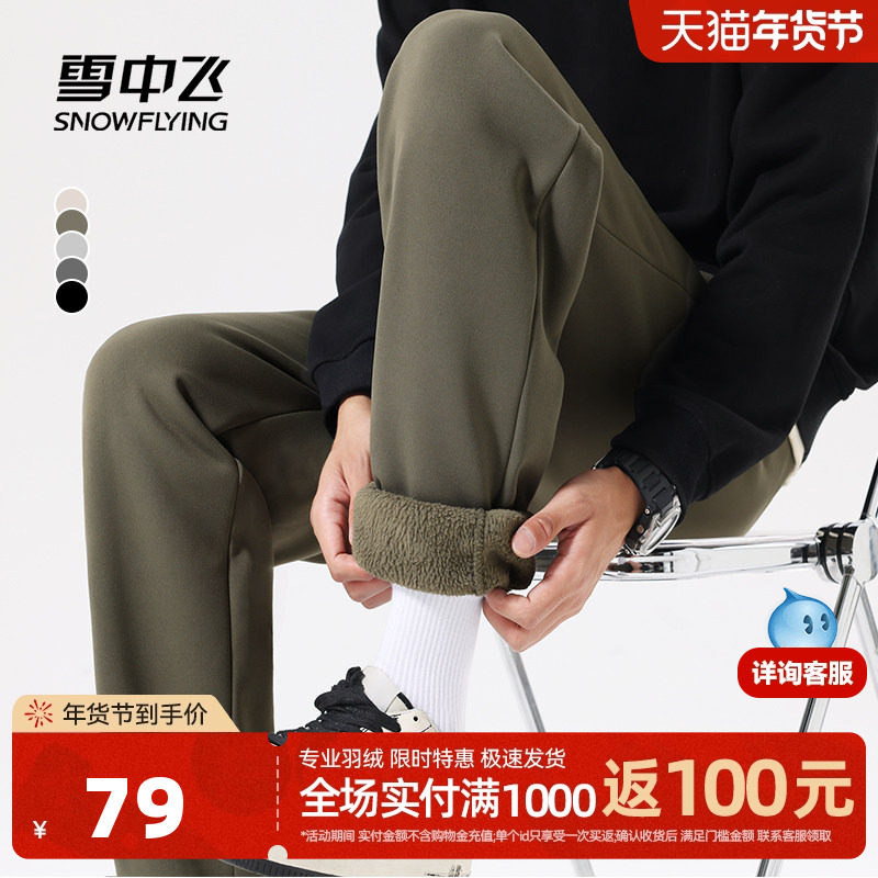 雪中飞男士卫裤加绒加厚羊毛保暖裤2025秋冬松紧腰百搭直筒休闲裤