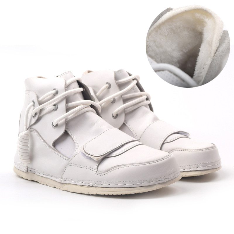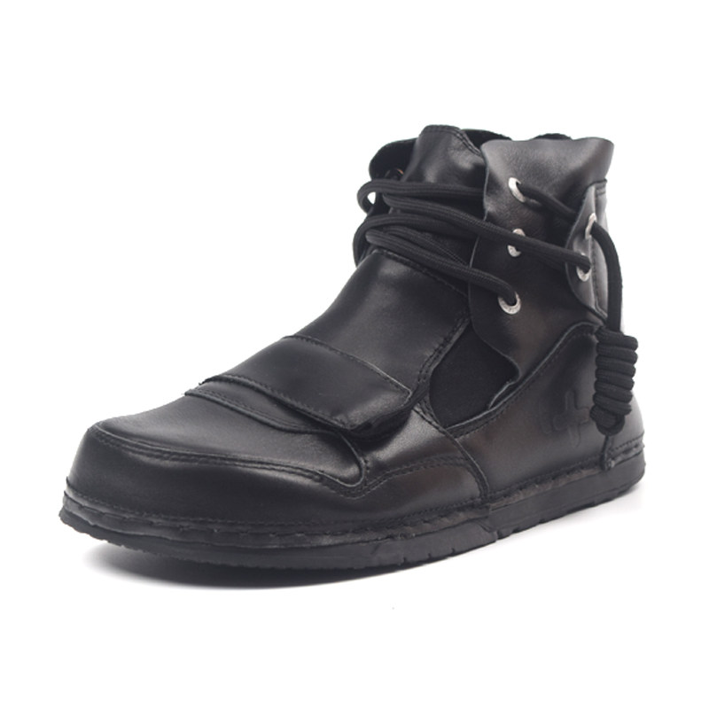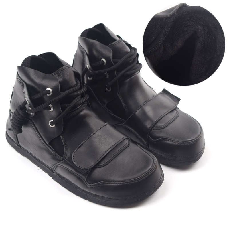 黑色真皮马丁鞋秋冬加绒小众丑萌鞋女胖mm鞋宽胖脚魔术贴男大头鞋