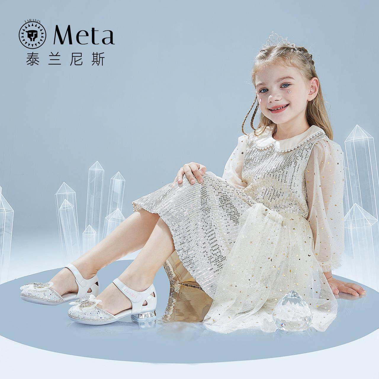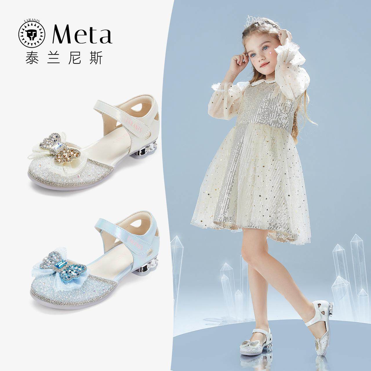 泰兰尼斯meta春夏新款女童水钻公主鞋软底儿童水晶鞋校园演出鞋子