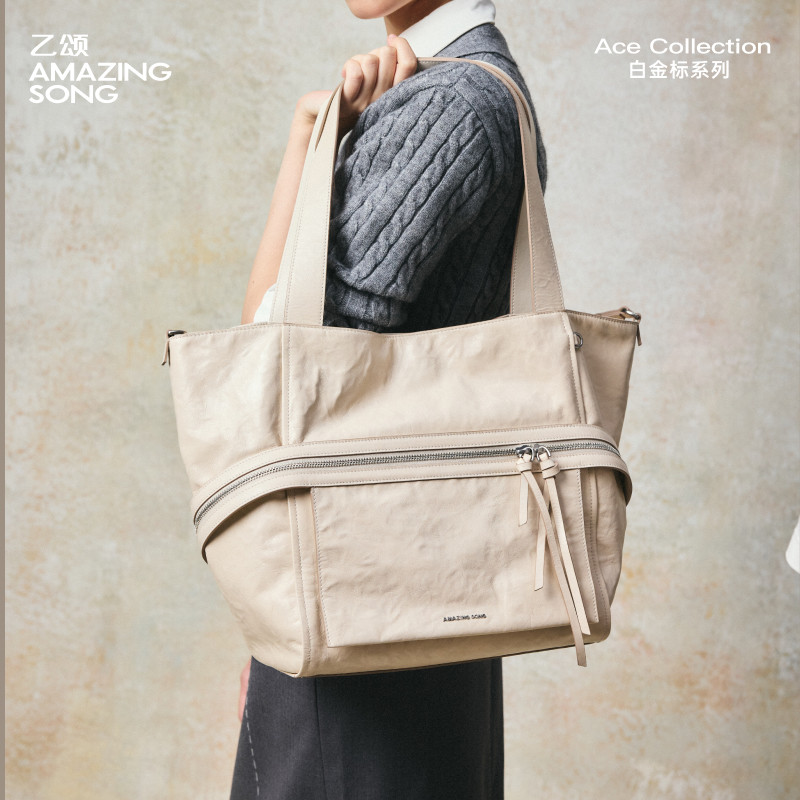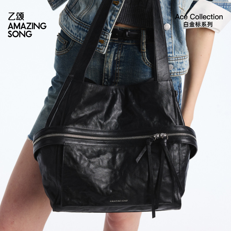 Amazing Song乙颂芝士卷托特单肩腋下包褶皱植鞣头层牛皮男女通勤