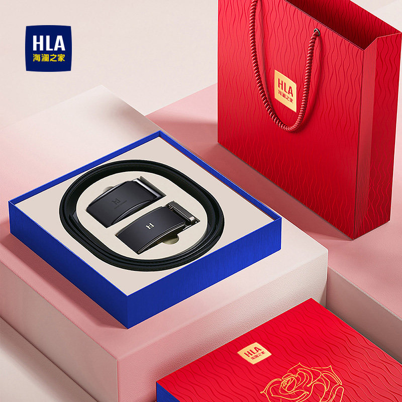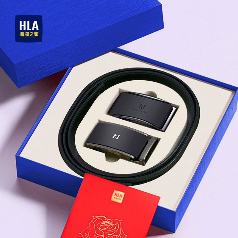 海澜之家腰带男士双扣头礼盒新款送男朋友真牛皮皮带潮年轻人裤带