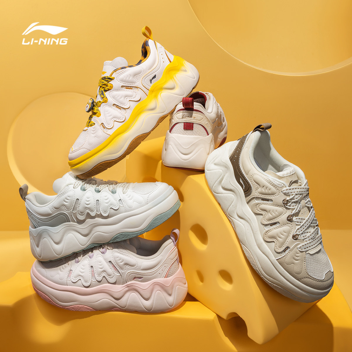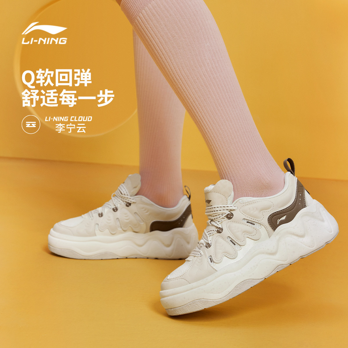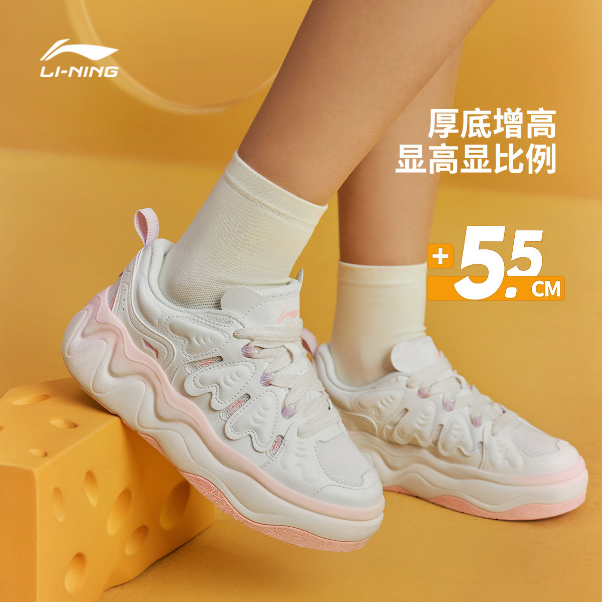 李宁奶酪3丨休闲鞋女春季厚底增高红色新款新年面包鞋运动鞋板鞋