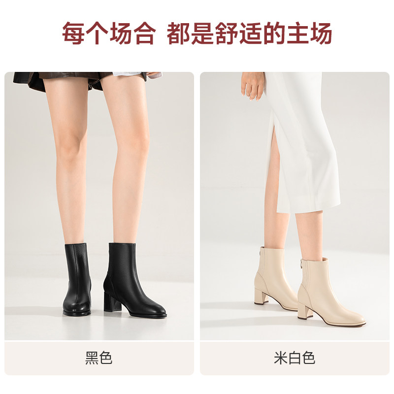 天美意复古厚底加绒切尔西短靴女鞋子瘦瘦靴时装靴皮靴2025冬新款