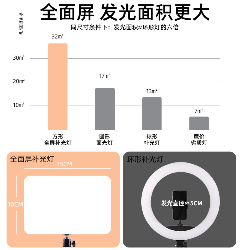 直播补光灯下巴灯主播专用多色美颜嫩肤视频拍摄氛围灯桌面面部led灯光清晰下颌线面光打光灯落地支架平板灯