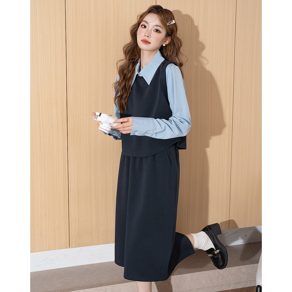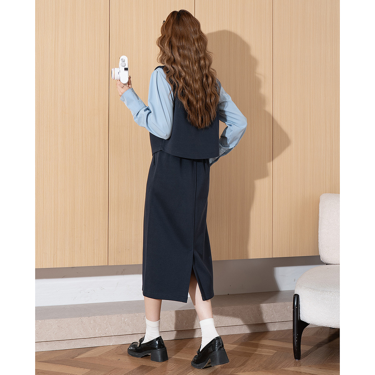 唐狮秋冬季套装女假两件背心上衣气质半裙两件套超好看温柔风tu
