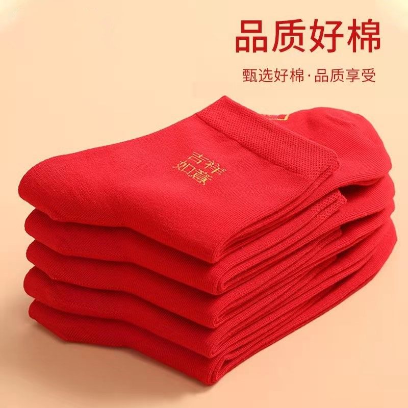 脚踏七星袜子红色男女纯棉红袜子本命年走鸿运透气防臭冬季中筒