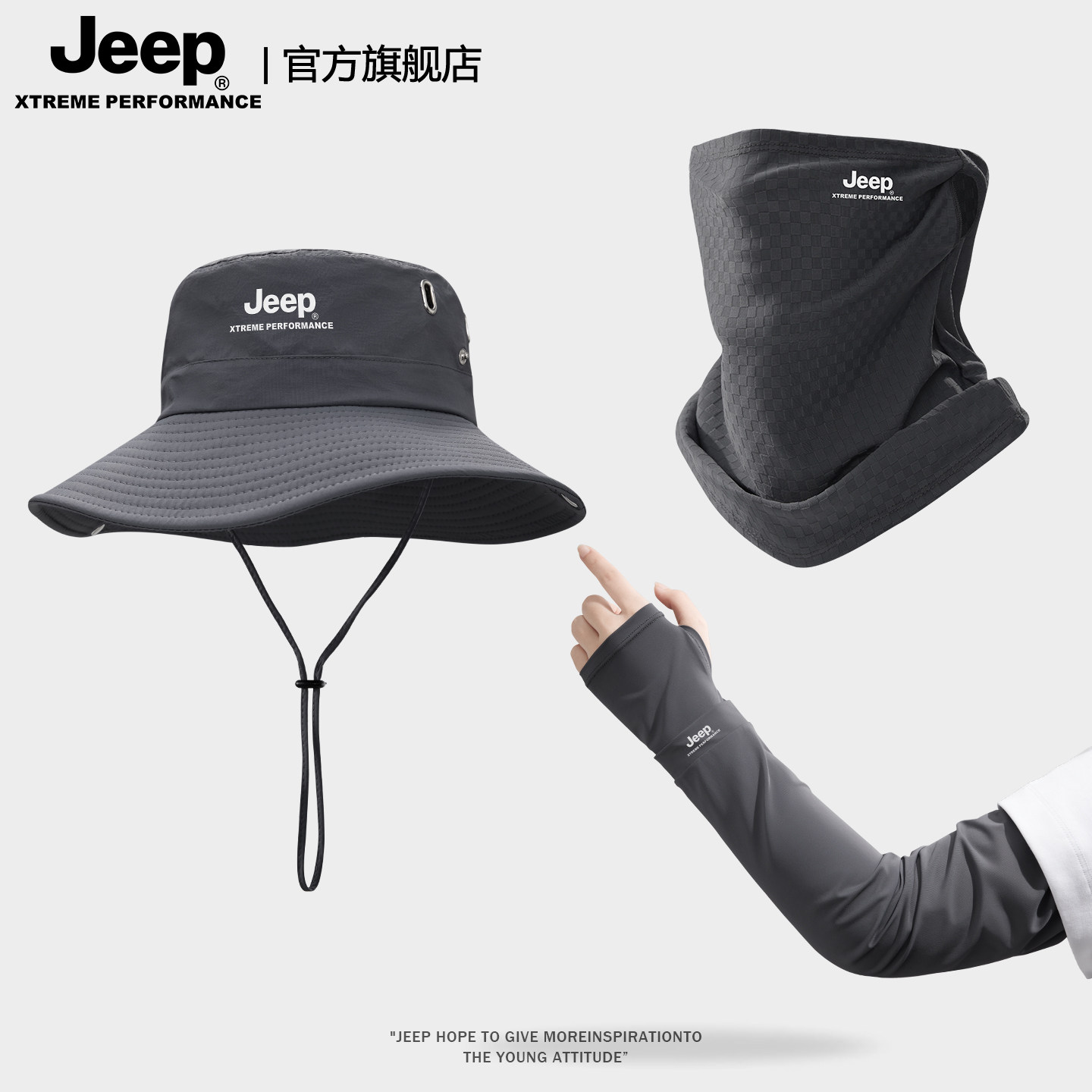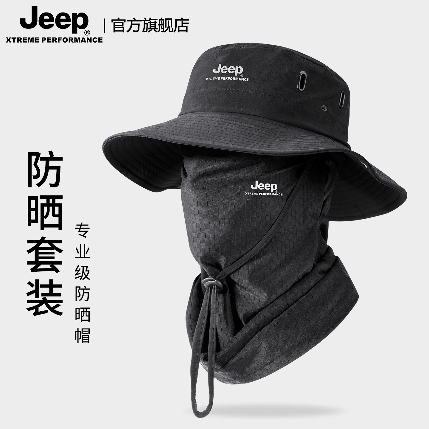 jeep吉普夏季专业级男士户外钓鱼防晒帽子电动车遮脸面罩渔夫帽男