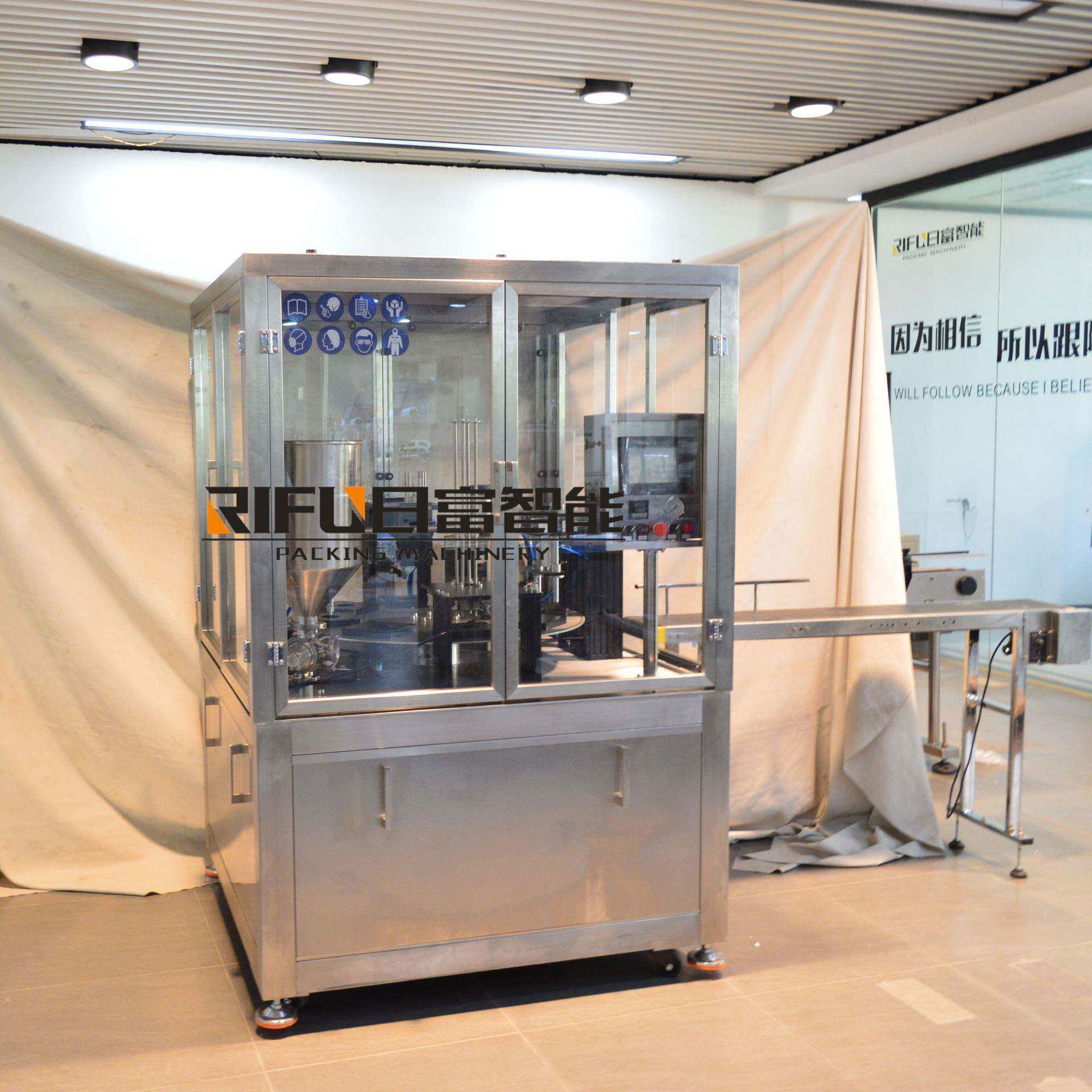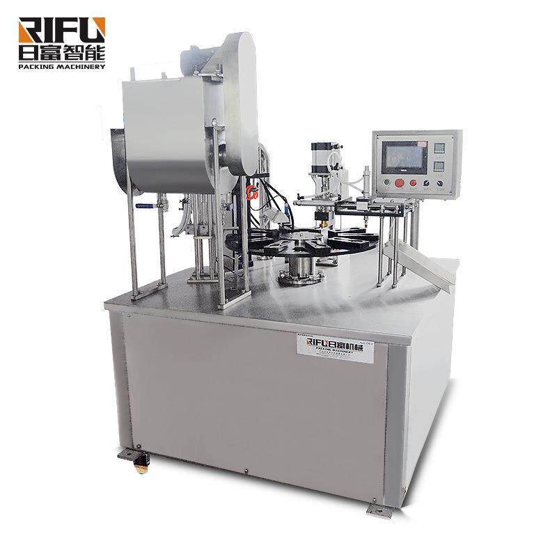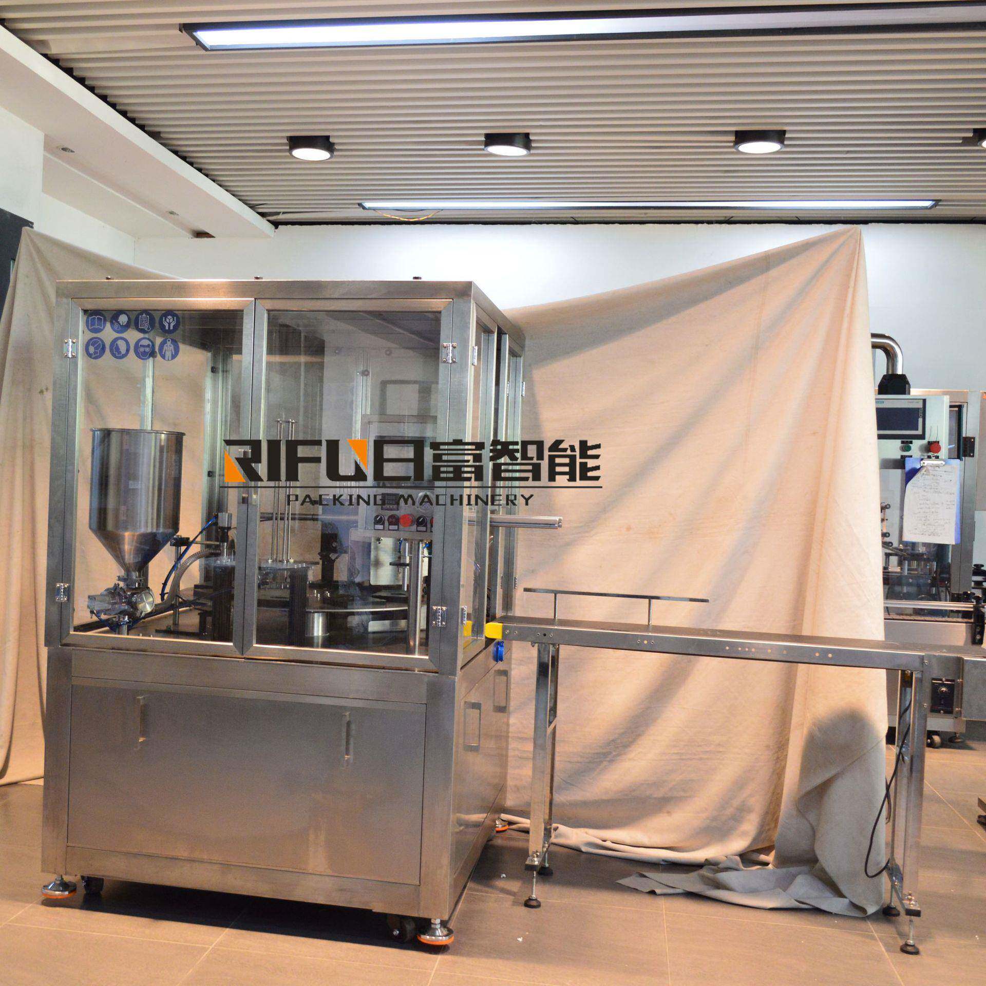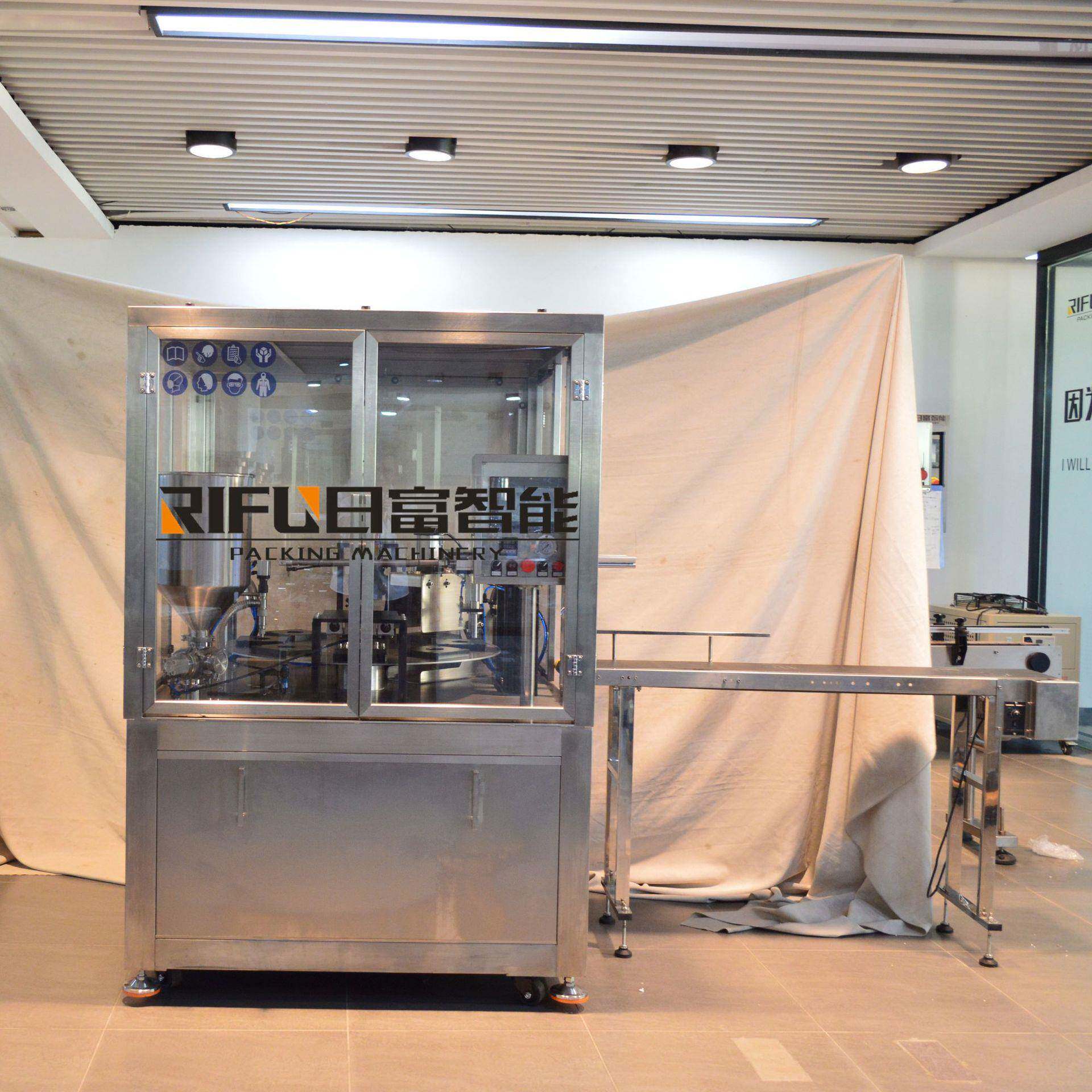 自动面膜液灌装封口机 酸奶果冻塑杯封口机 转盘式一出一塑杯机