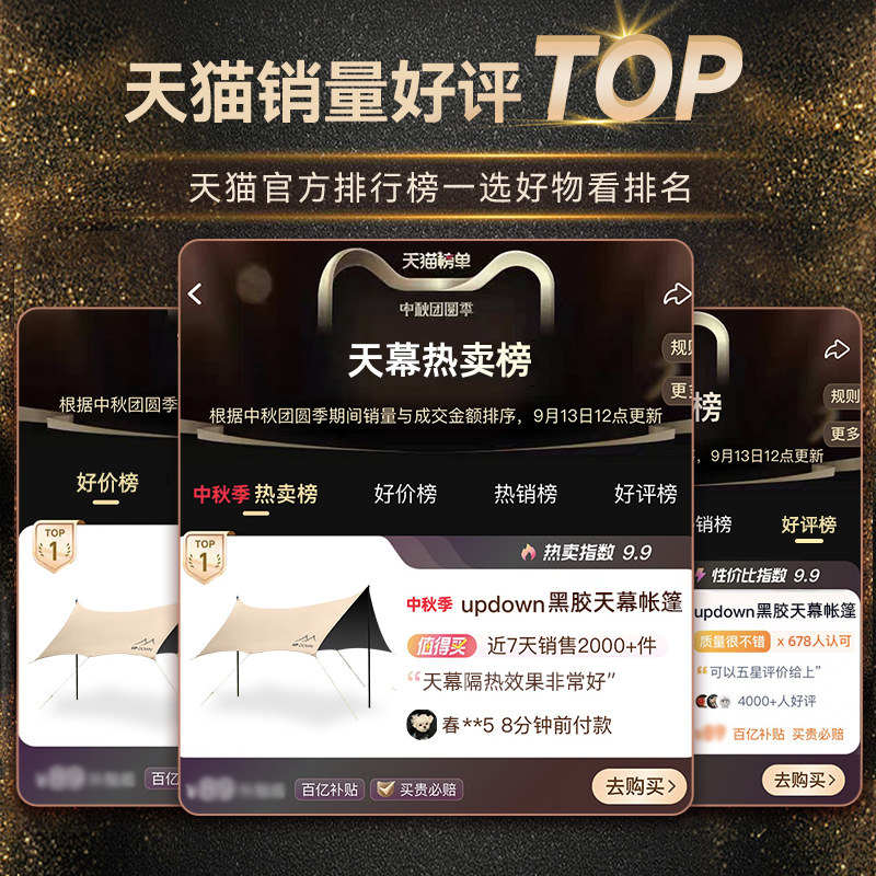 Updown黑胶天幕帐篷户外2026新款露营装备全套野营免搭防晒遮阳棚