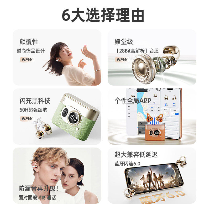 【精美耳饰】带智能APP蓝牙耳机耳夹式无线骨传导不入耳超长续航