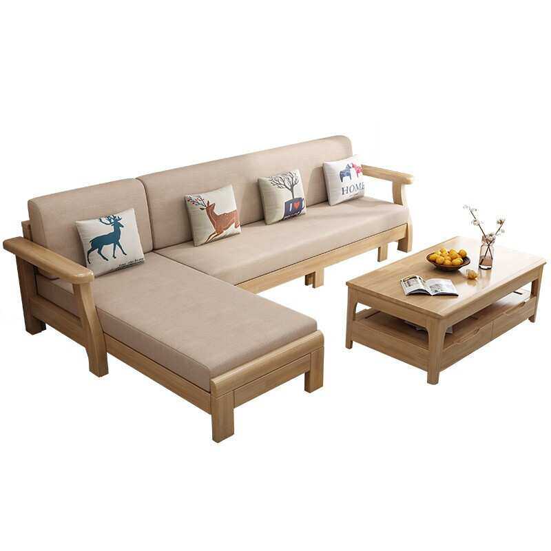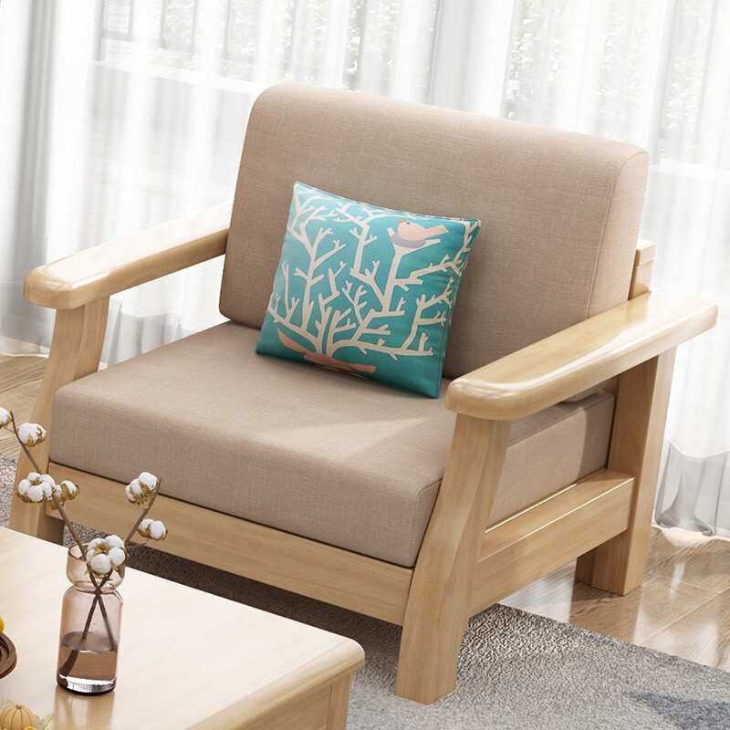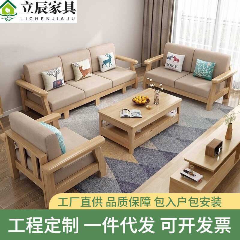 北欧客厅沙发 木布结合简约双人贵妃组合 小户型家具实木拉床沙发