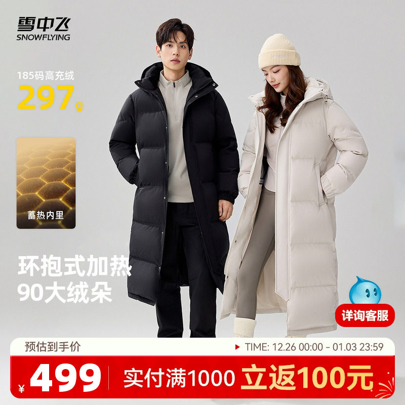 雪中飞2025冬新款男女同款大被子长款六格高充绒羽绒服厚显瘦