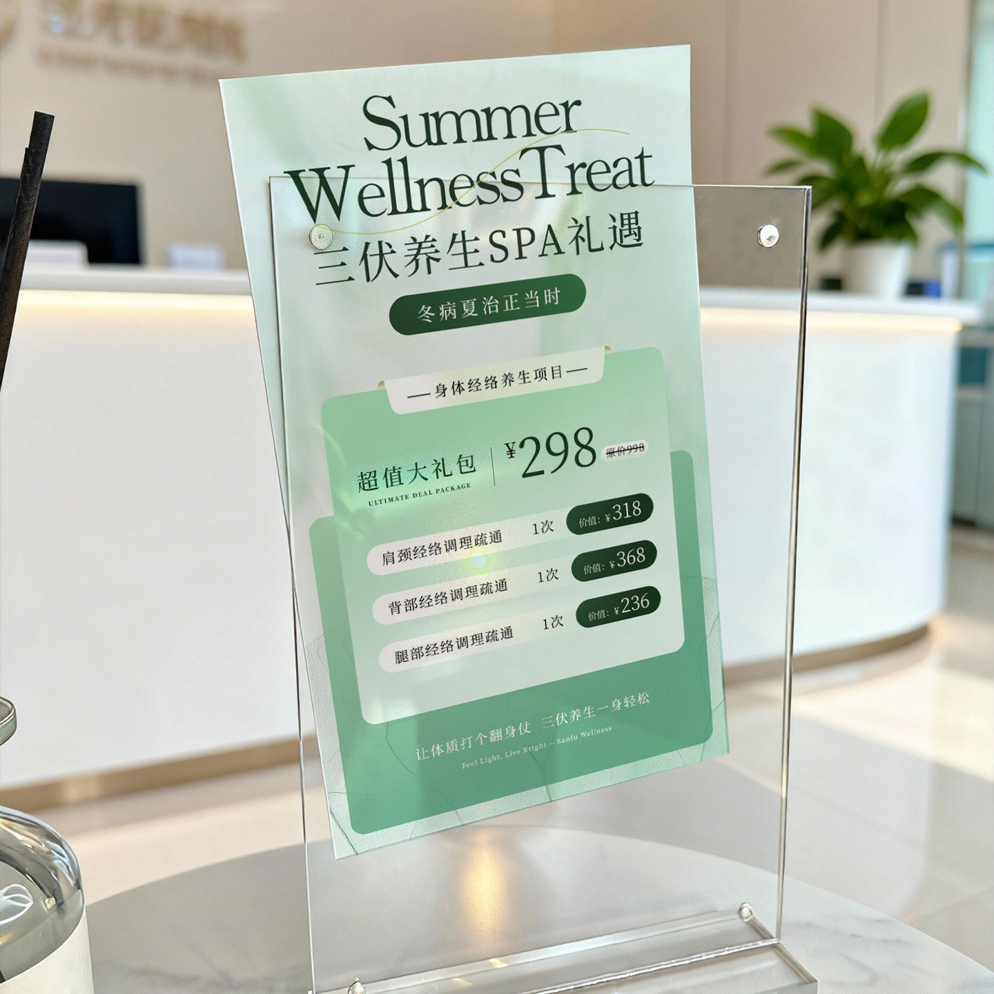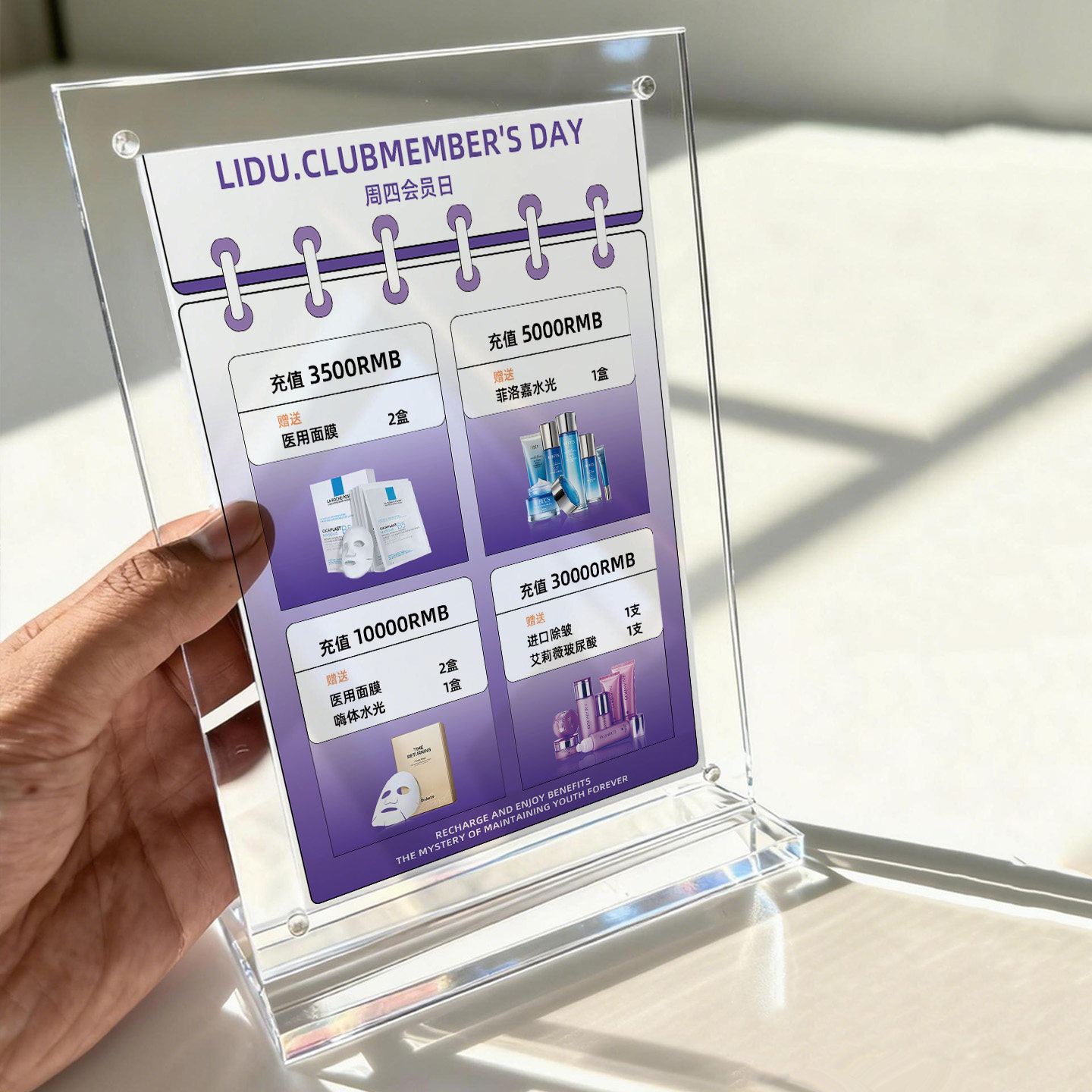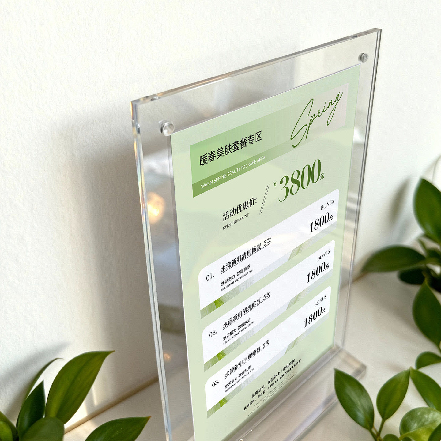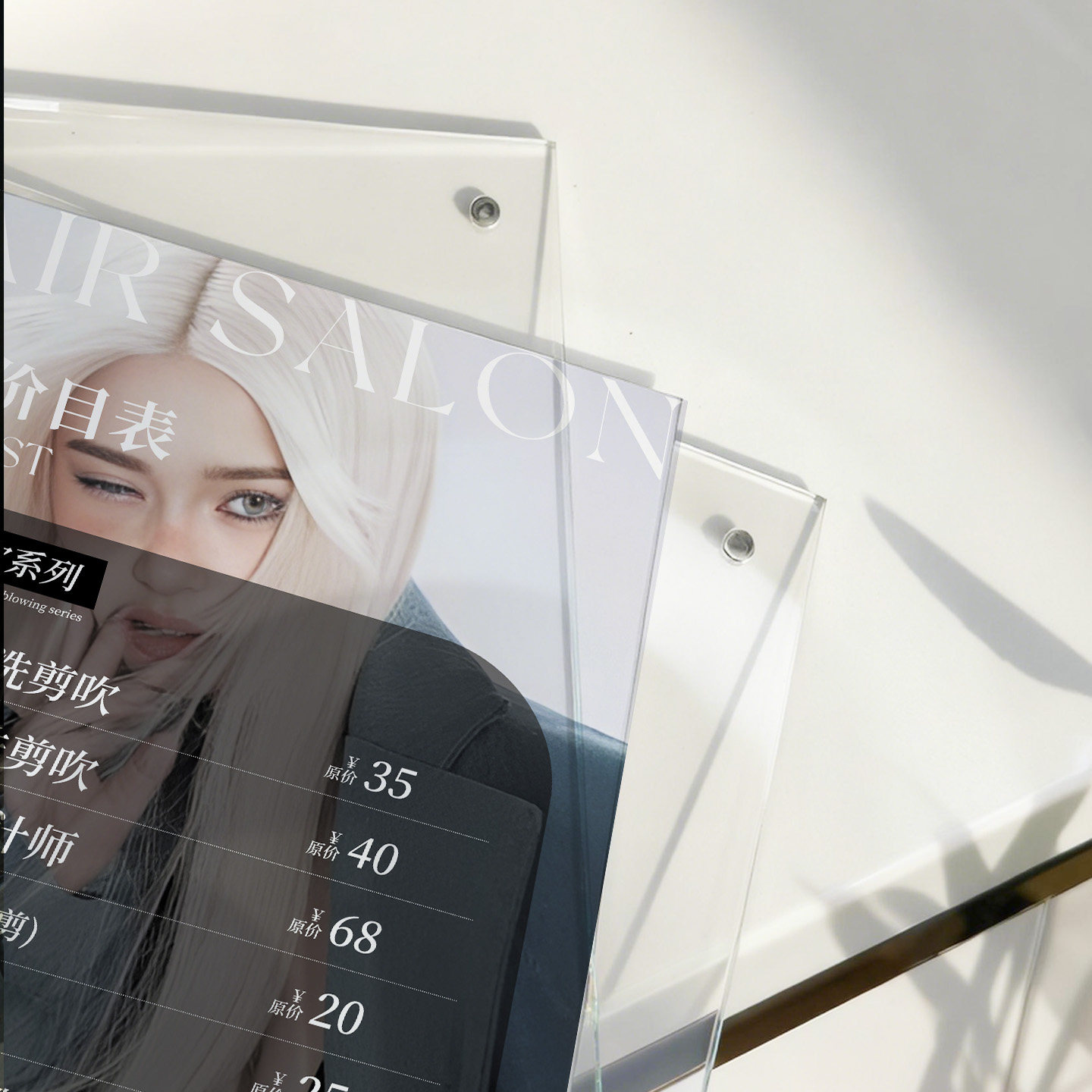 美容院价格表摆台美甲美睫理发店台卡展示牌桌牌定制开业会员充值桌牌台牌可更换亚克力A4磁吸价目表设计制作