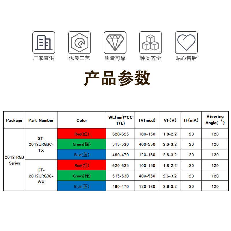 厂家 0805RGB贴片LED灯珠 2012双色三色RGB灯珠 发光二极管指示灯