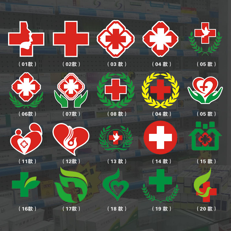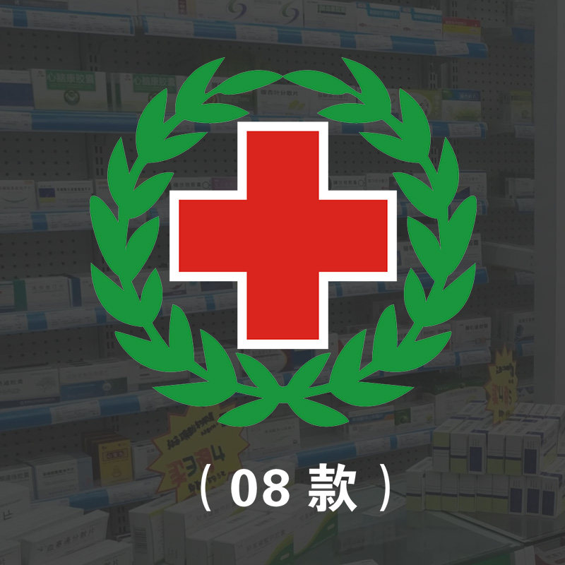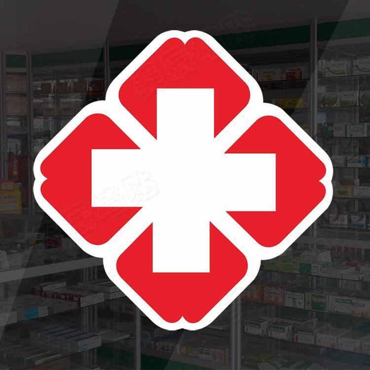 新款白底红十字贴纸医药贴药房标志标识医院诊所 收纳箱贴药柜展示贴 玻璃贴纸