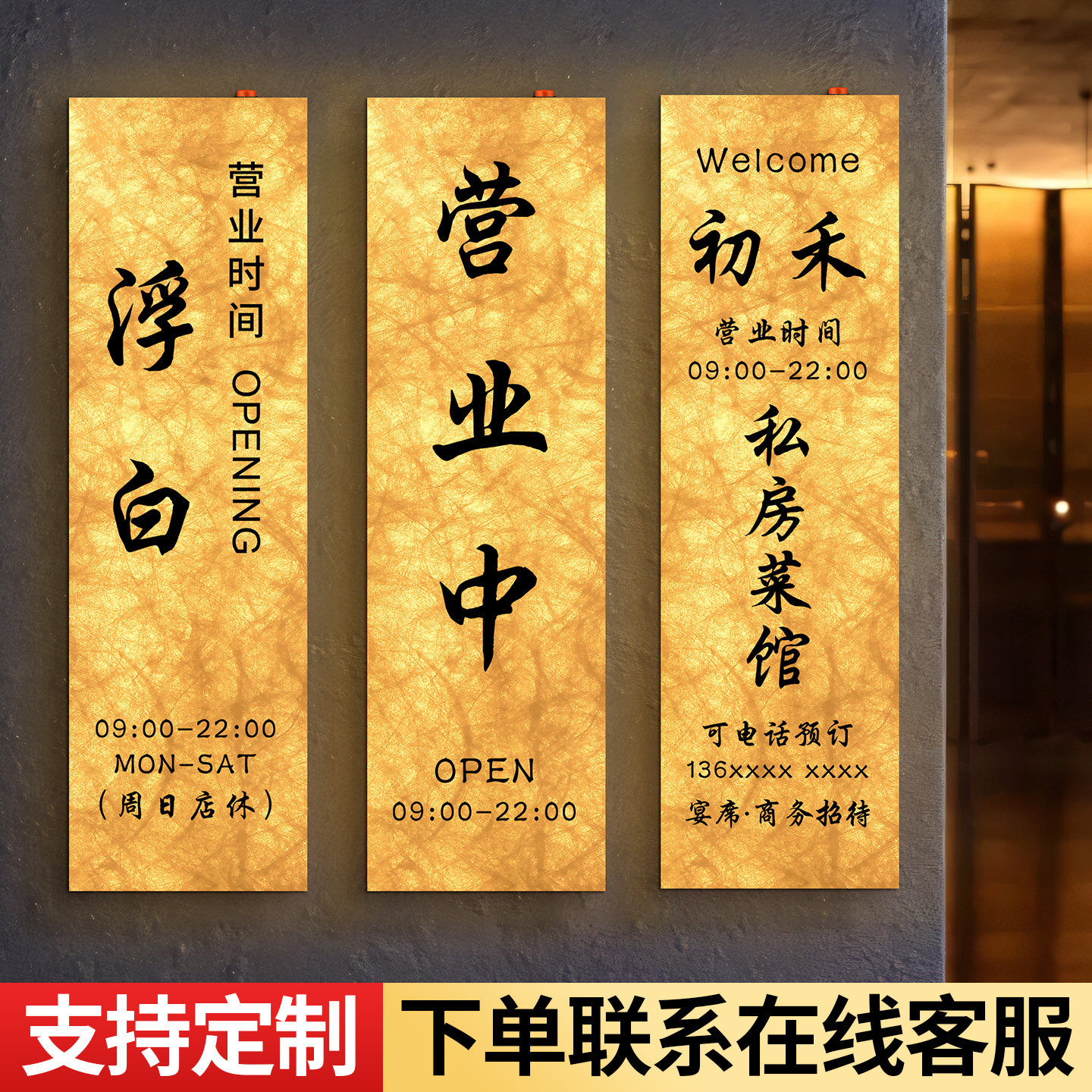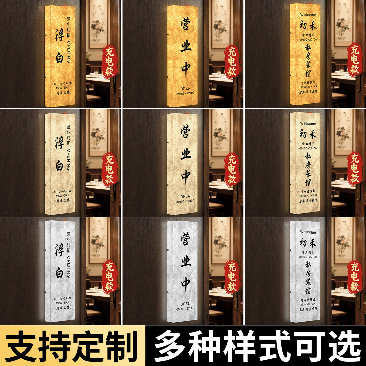营业中挂牌定制定做发光led灯店铺门店今日上班时间提示门牌餐饮店门头网红ins风24小时带灯挂墙式杜邦纸灯箱