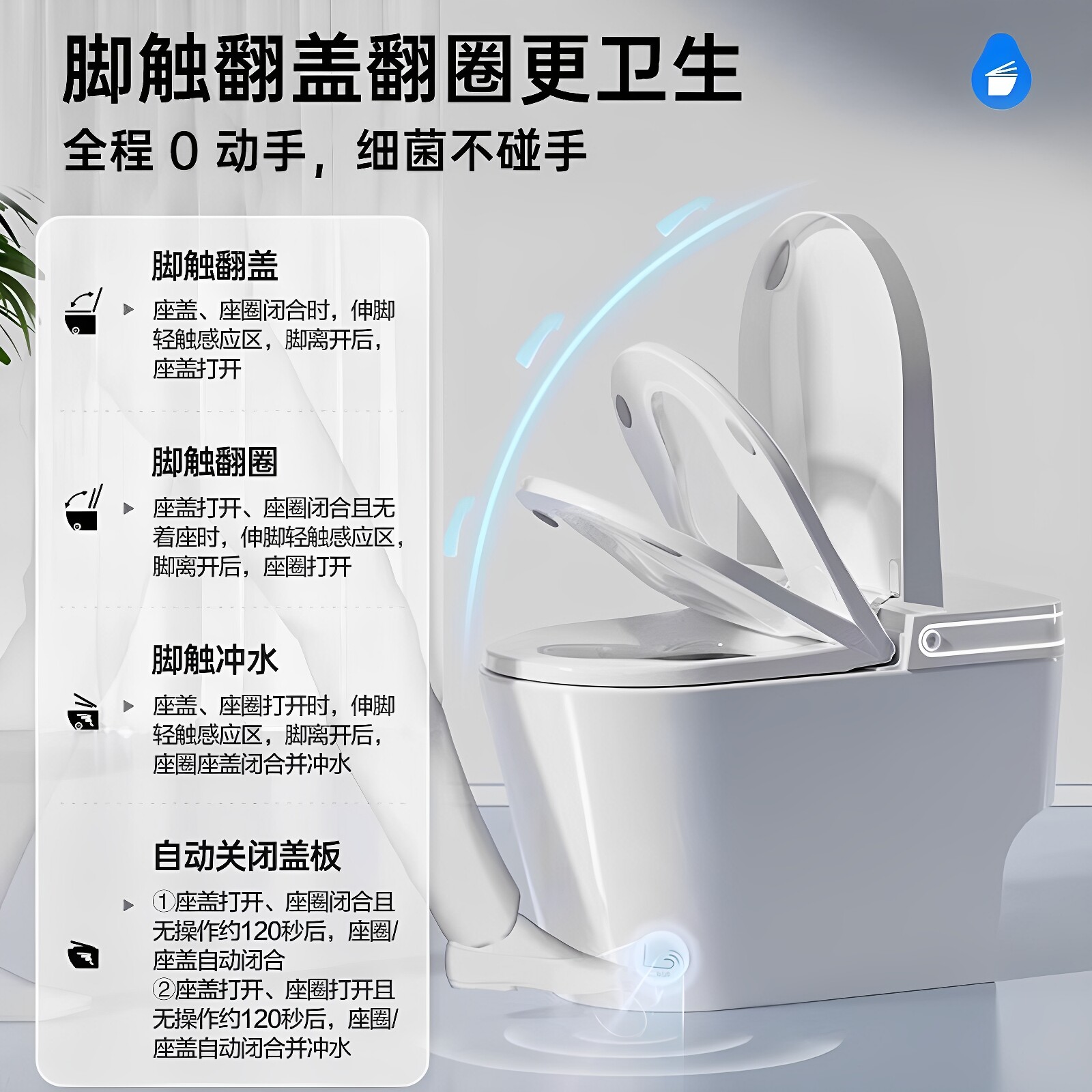 箭牌轻智能马桶家用小户型脚感冲水一体式抗菌虹吸坐便器AKE1165P
