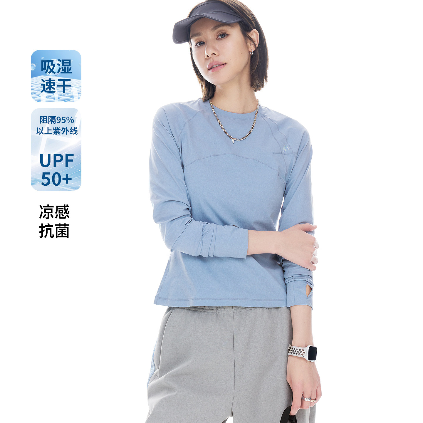 CLOUDSPACE【青花T】UPF50+防晒吸湿速干短款长袖女T恤2026春上衣