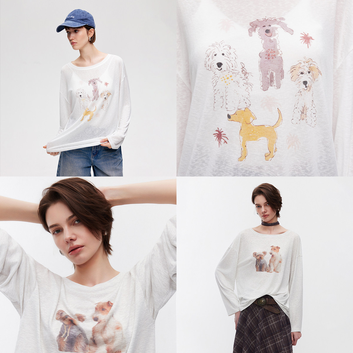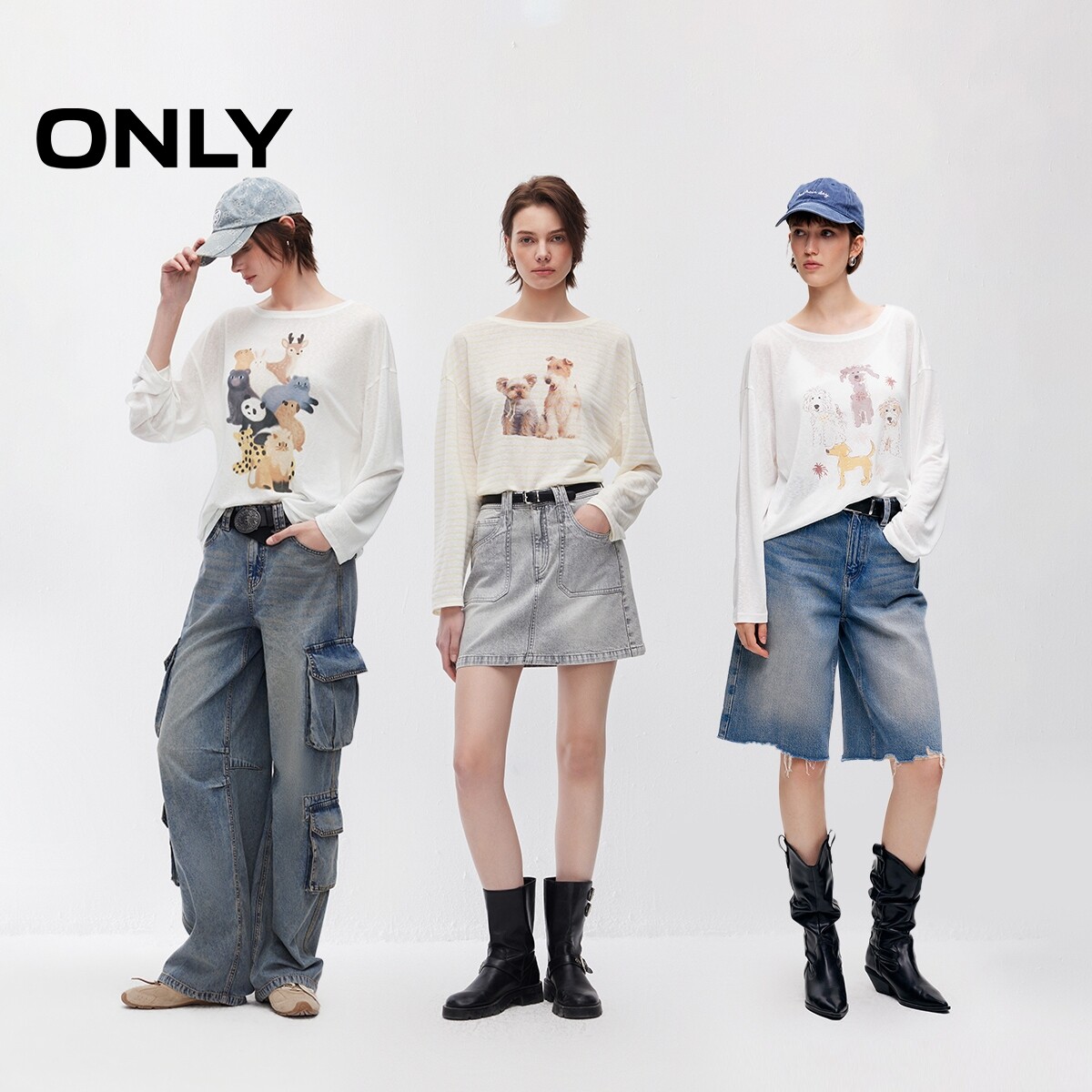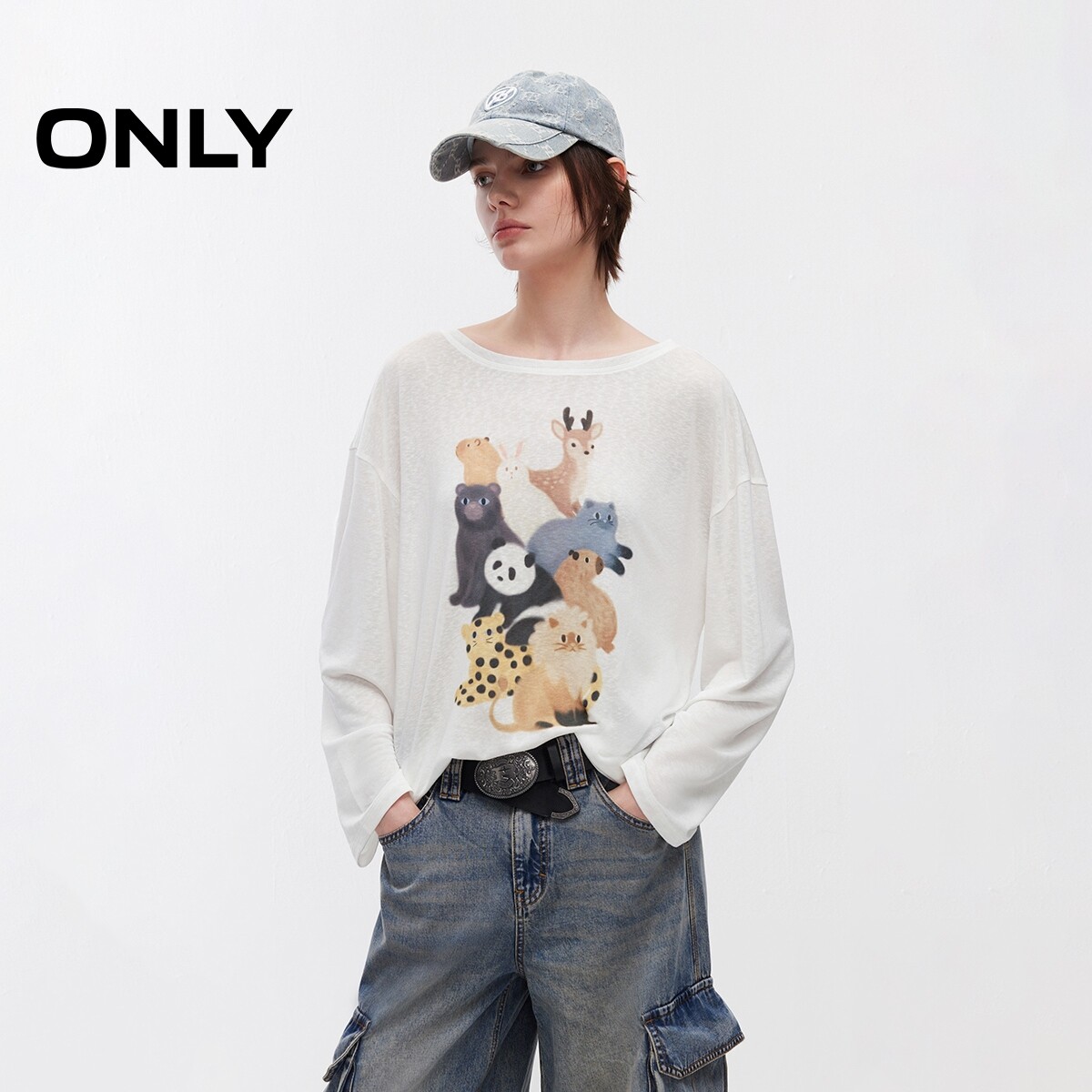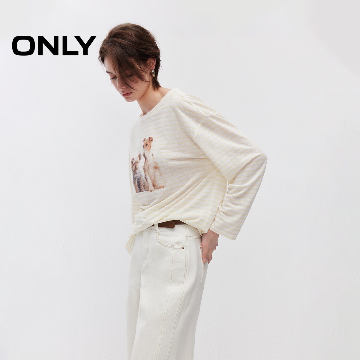 ONLY2026春季新款轻薄萌宠印花oversize柔软舒适长袖T恤上衣女