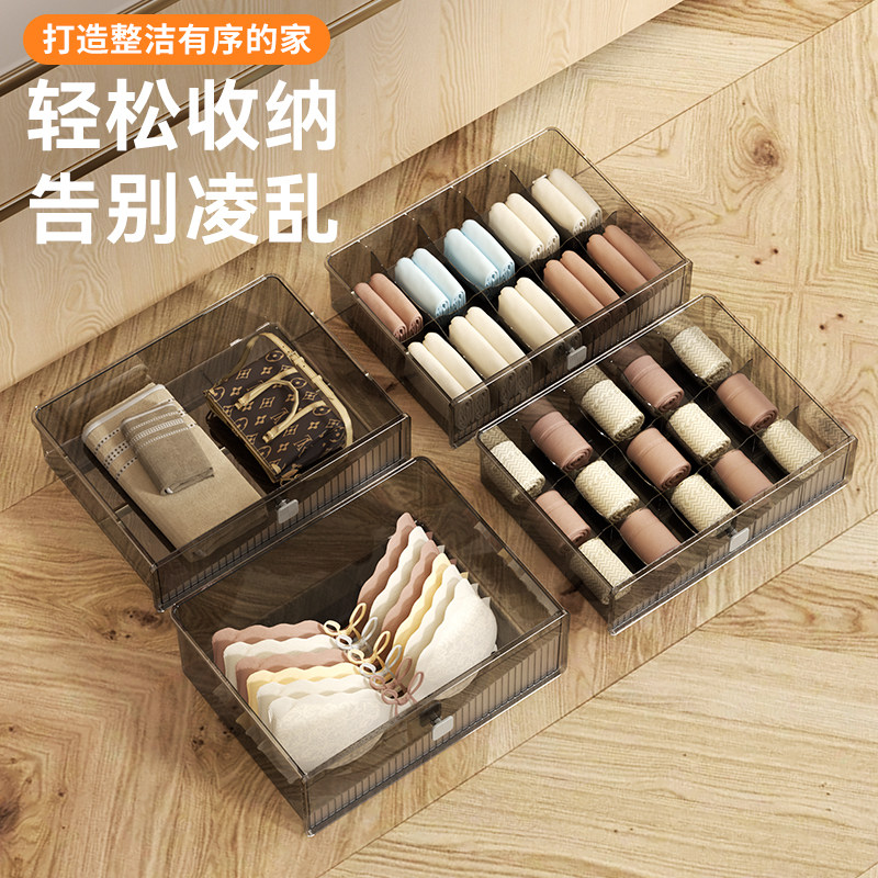 衣服收纳箱家用透明收纳盒整理筐抽屉内衣裤子储物盒衣柜分层神器