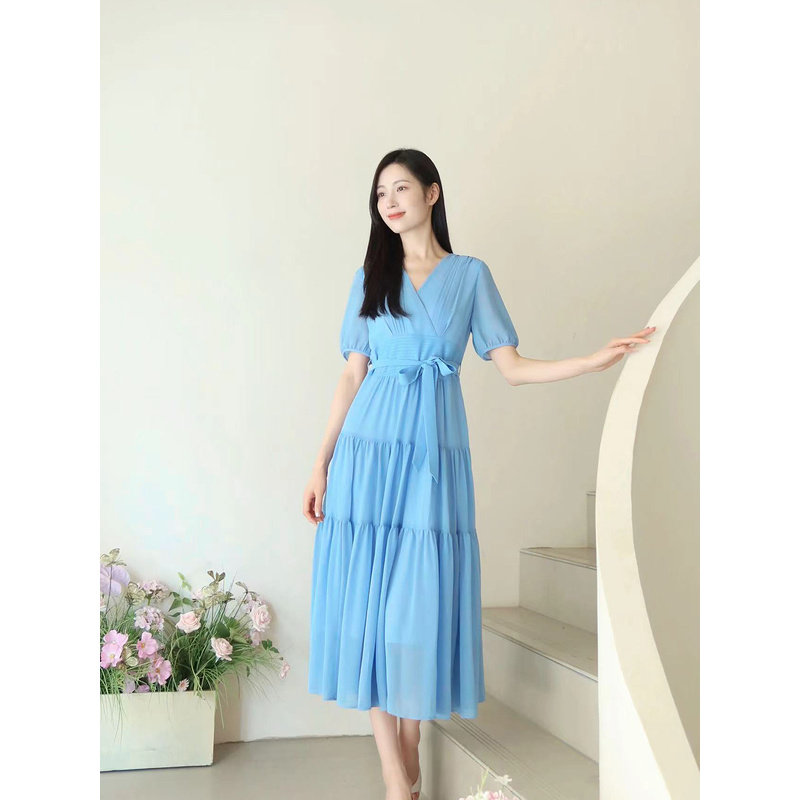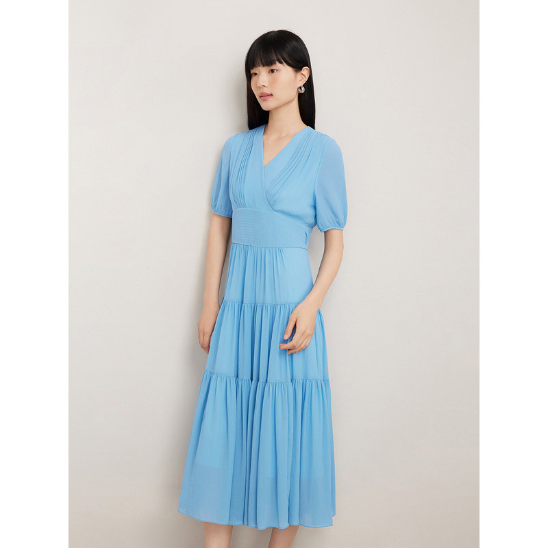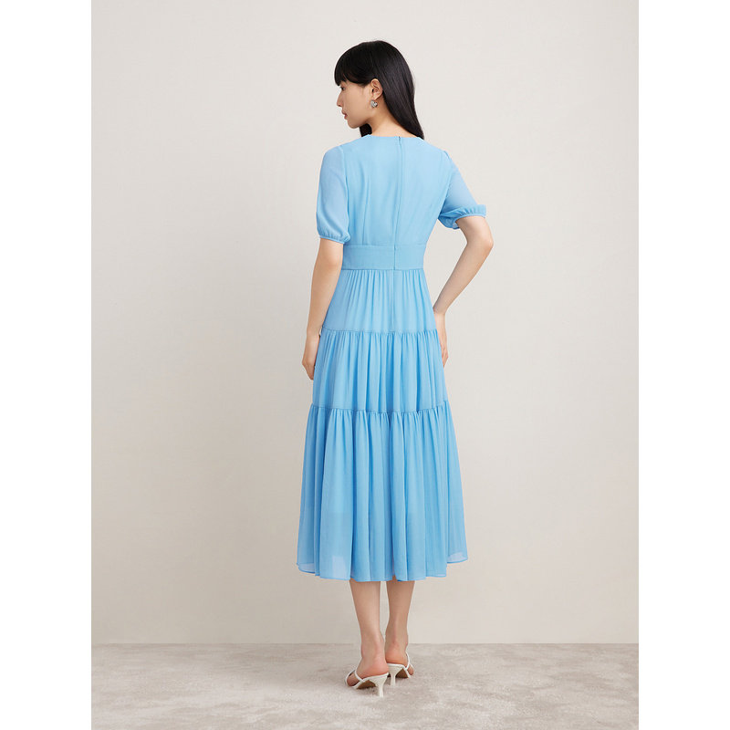 【博主同款】Goodland美地秋季法式高腰雪纺茶歇连衣裙
