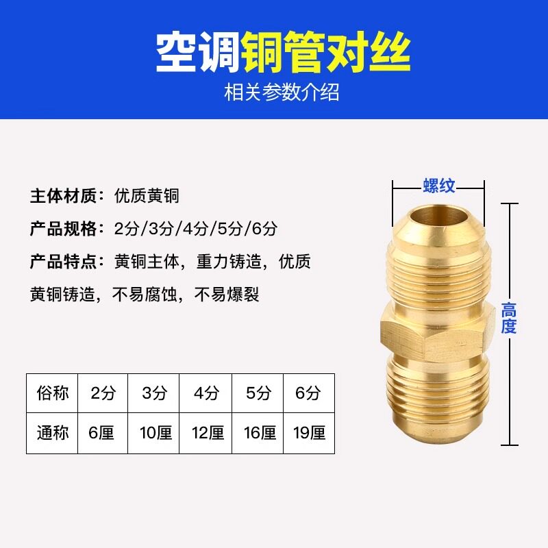 空调制冷配件冰箱冰柜铜管精品对丝接头免焊接全铜加厚铜管延长
