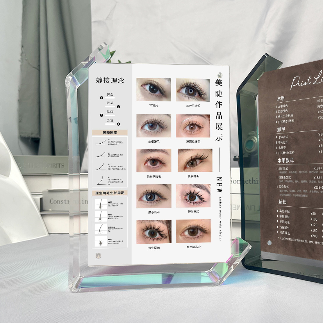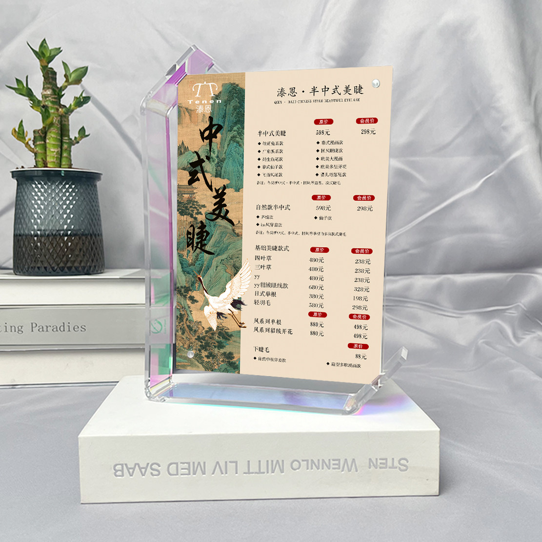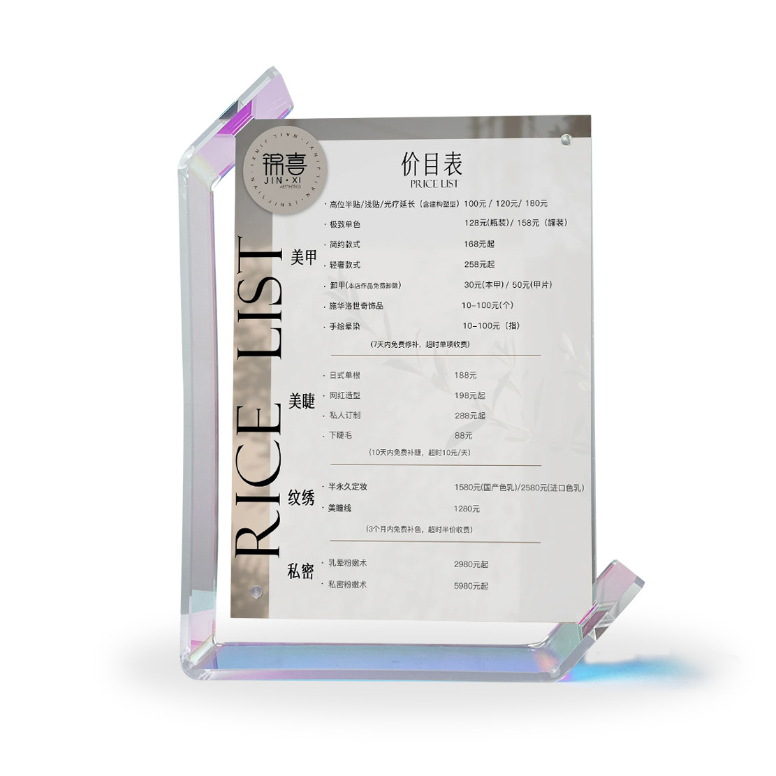 美容院价目表定制美甲美睫设计炫彩透明亚克力摆台卡美发理发店桌面立牌纹绣开业充值价格表桌牌双面a5展示牌
