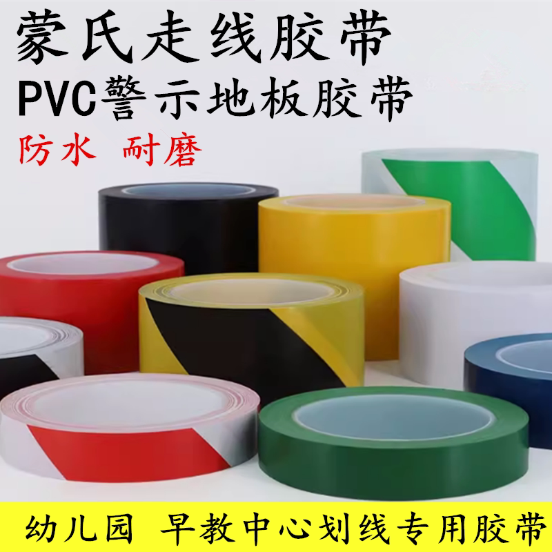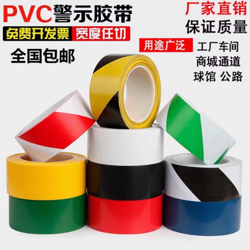 黄色PVC警示胶带黑黄地板胶带斑马线地标贴地面分区车间标识彩色划线地板定位管道包扎埋地保护抗老化PVC胶带