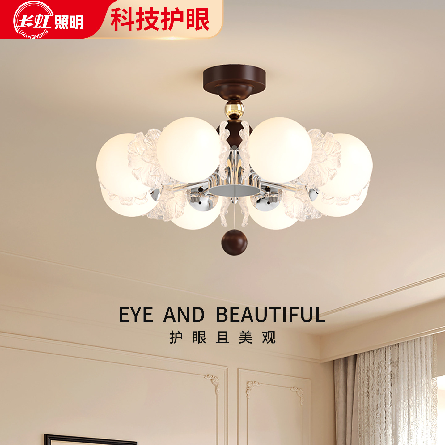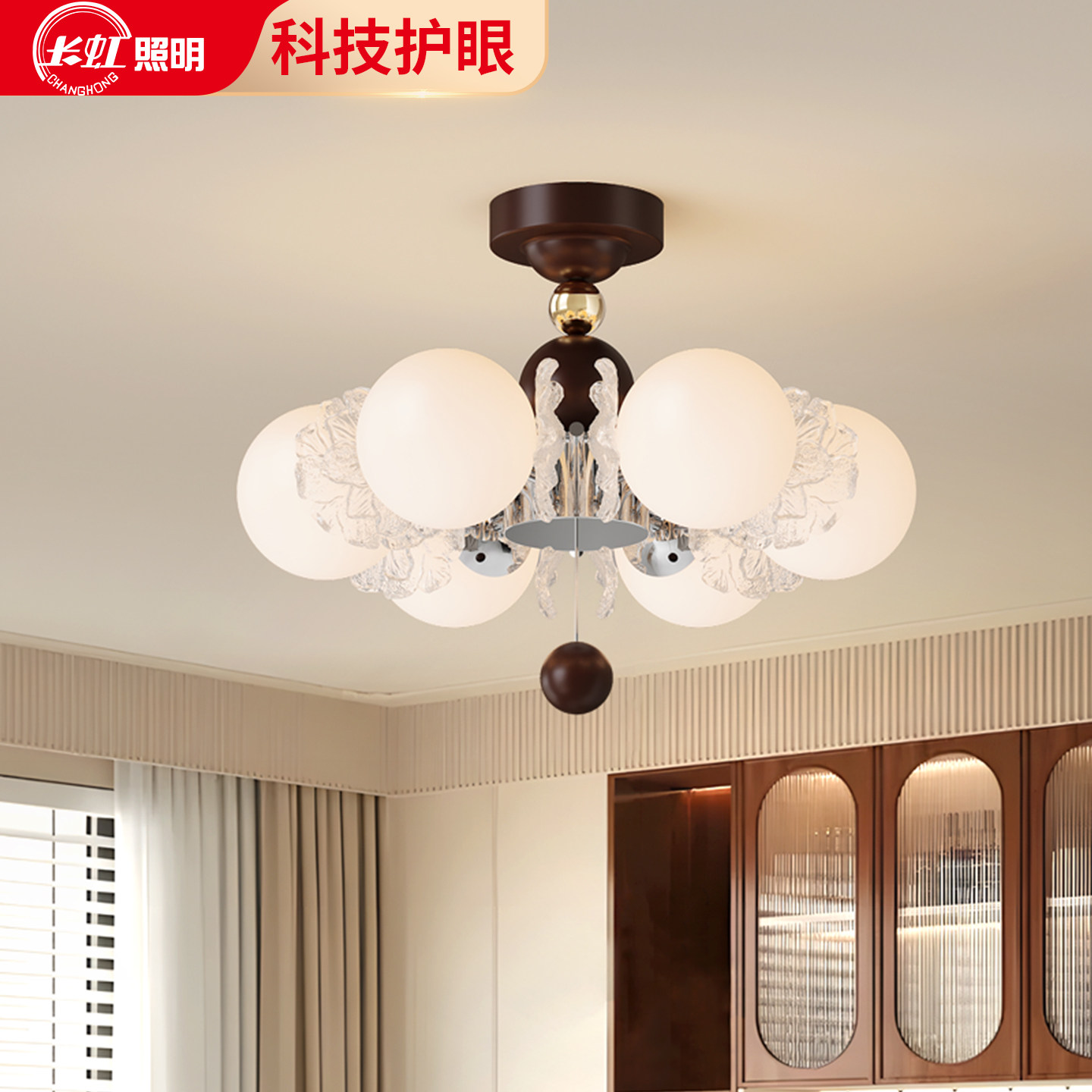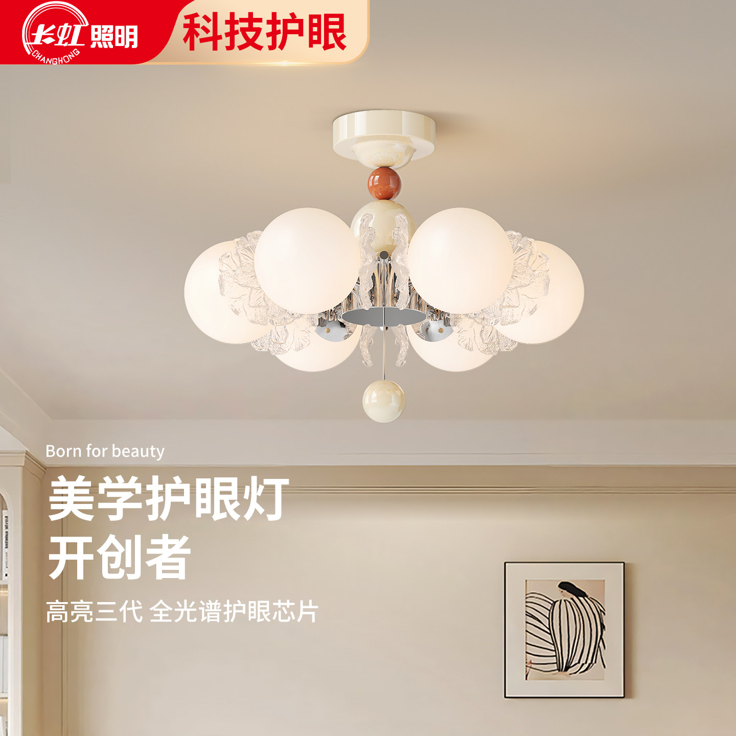 长虹轻奢玻璃花朵魔豆卧室吊灯现代简约餐厅书房灯具奶油风主卧灯