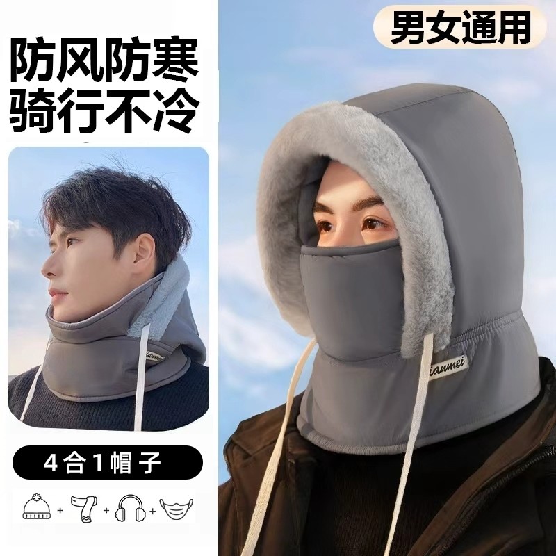 冬季保暖雷锋帽子加绒加厚防寒面罩围脖一体帽户外防风骑行包头帽