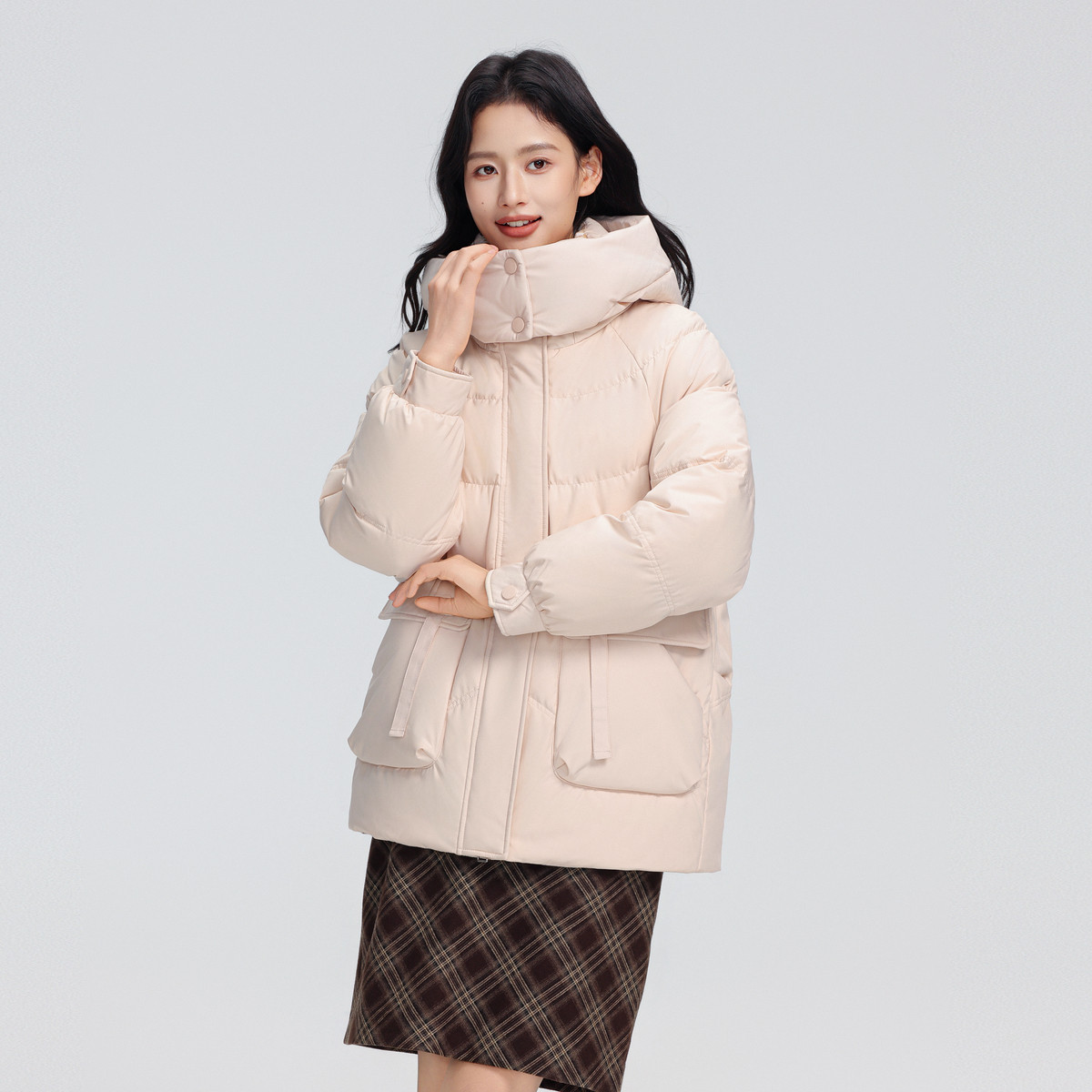 【鞠婧祎同款】鸭鸭2025年冬新款百搭短款女士纯色立领羽绒服外套