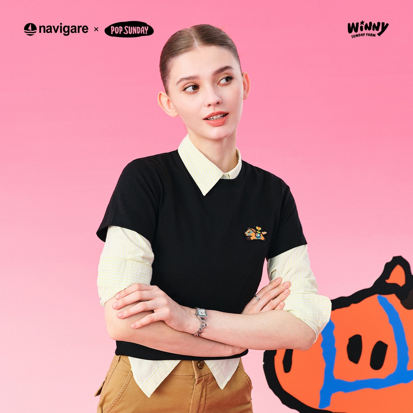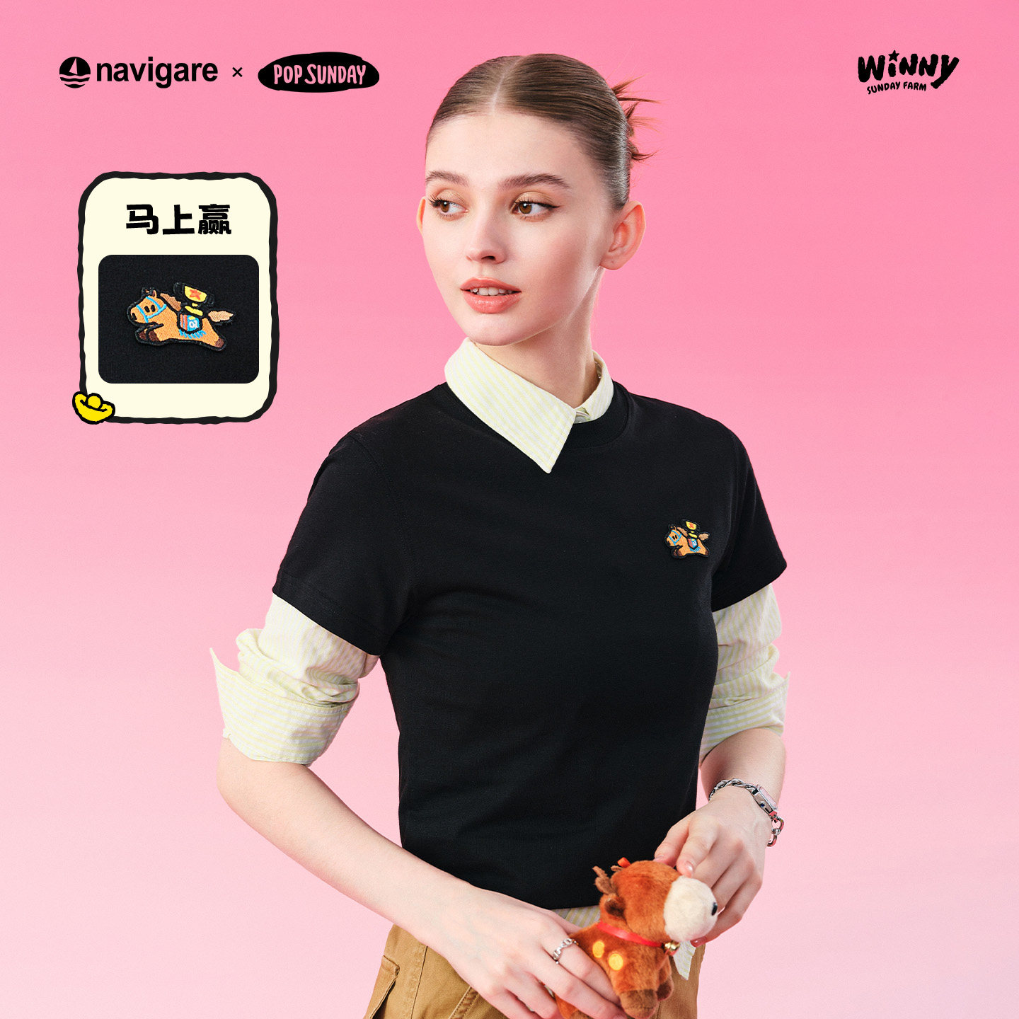 [POPSUNDAY马上赢系列]Navigare小帆船黑色短袖T恤女时尚套头体恤